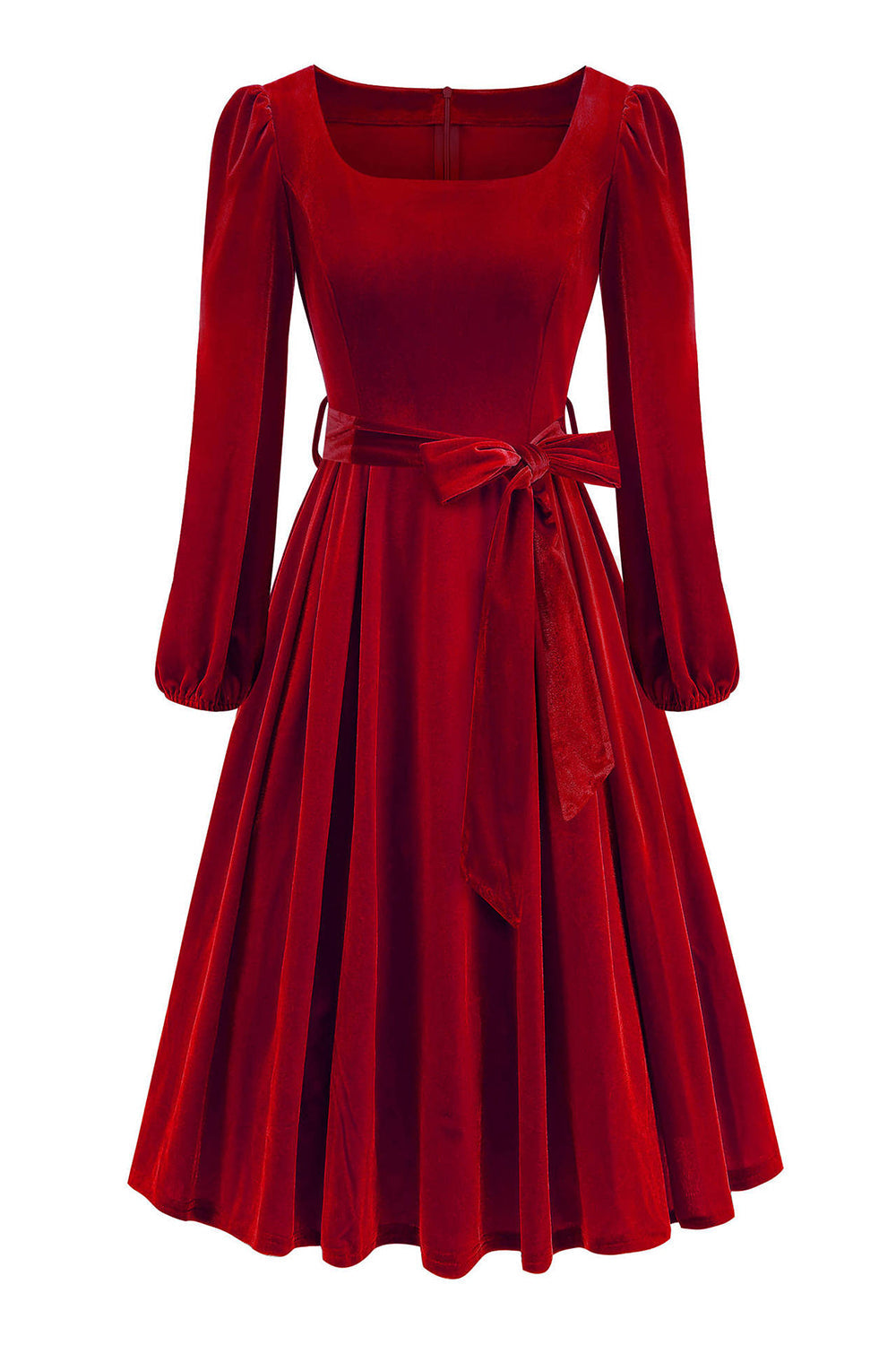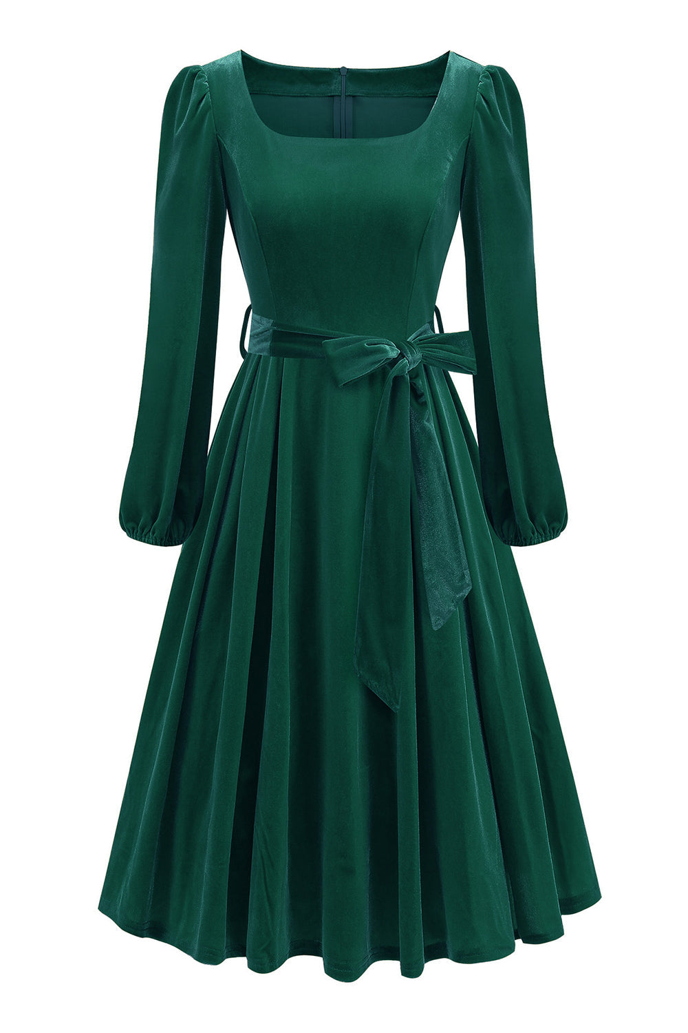 Dark Green Long Sleeve A Line 1950s Dress with Belt