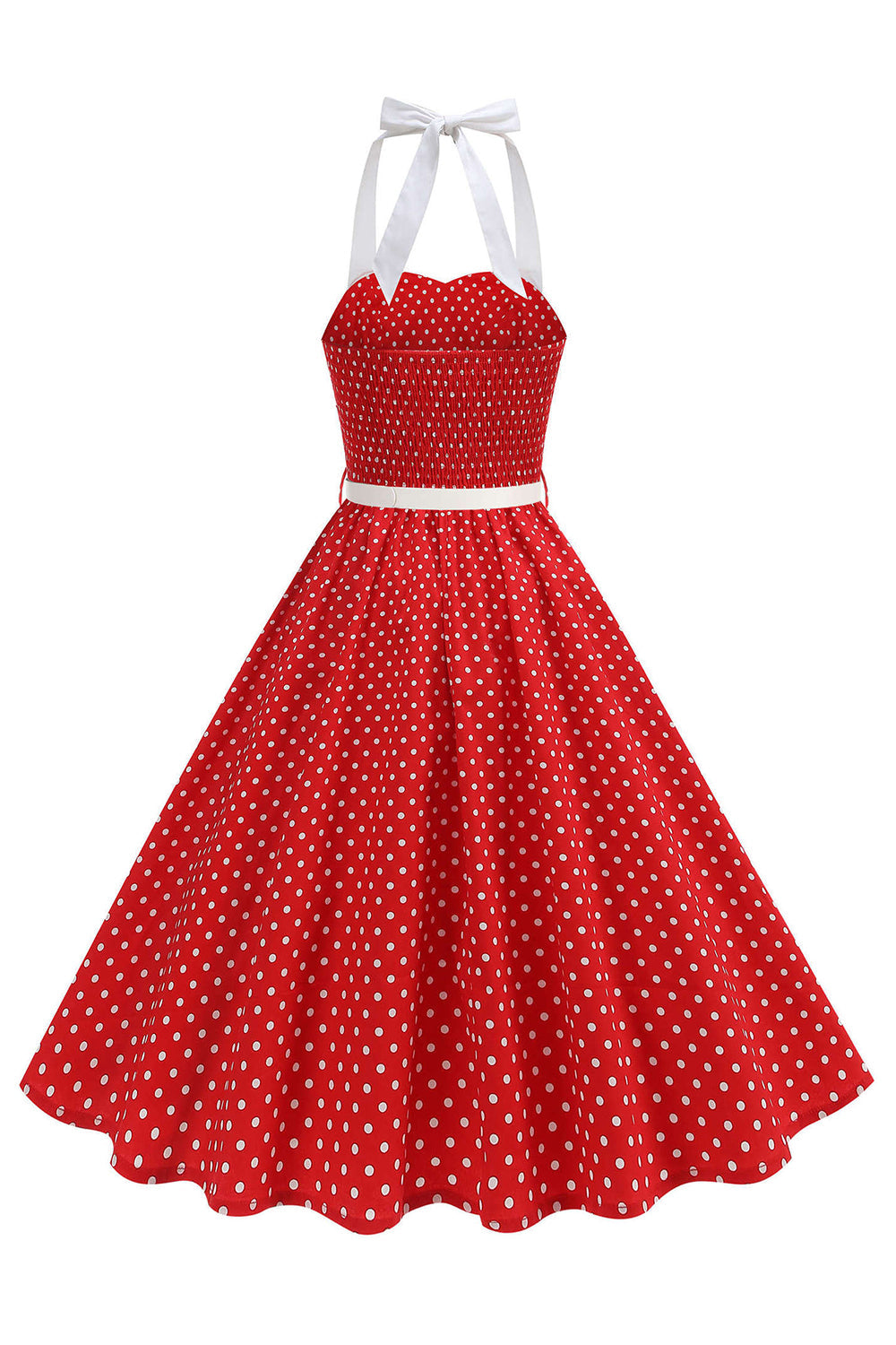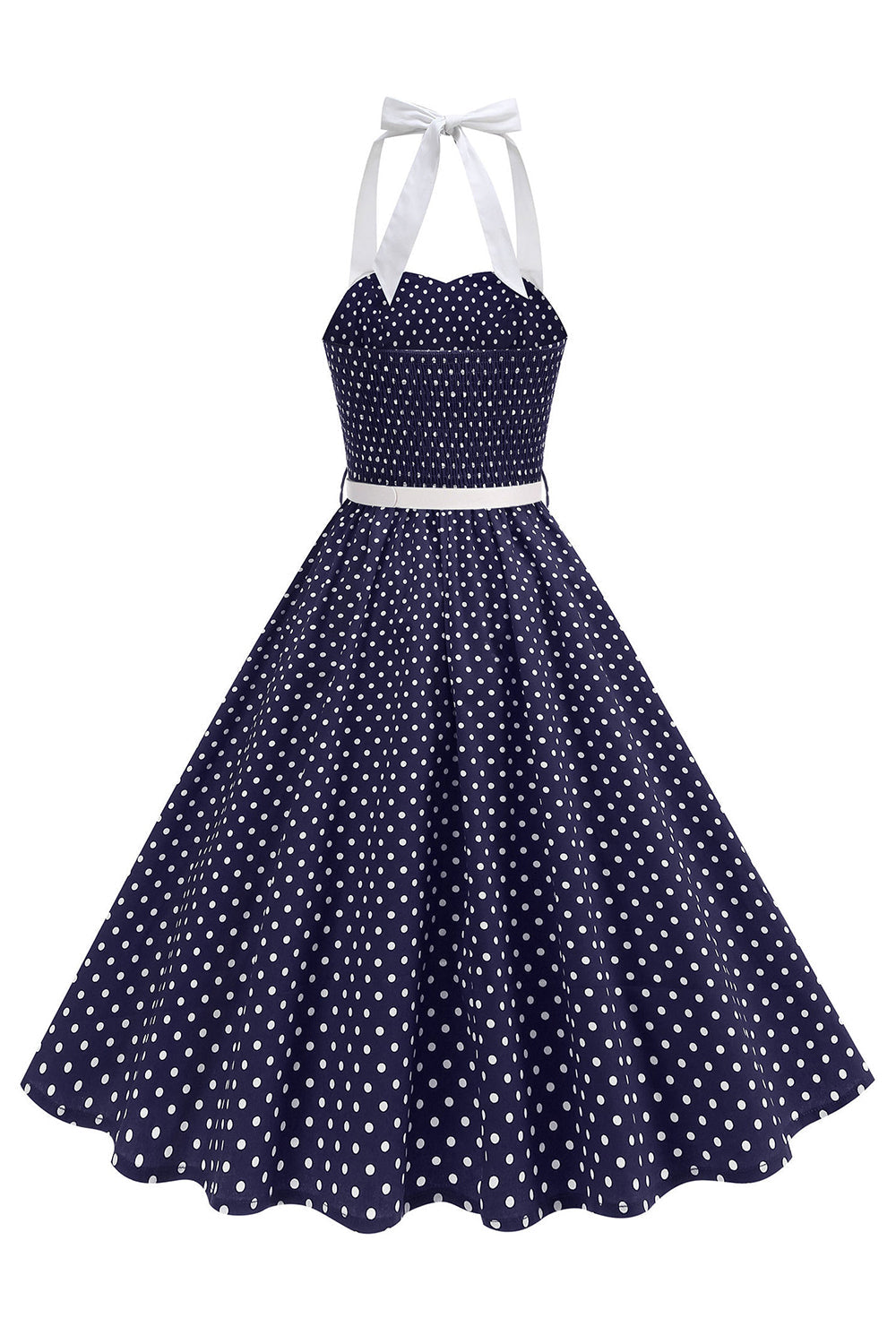 Halter Polka Dots Royal Blue A Line 1950s Dress