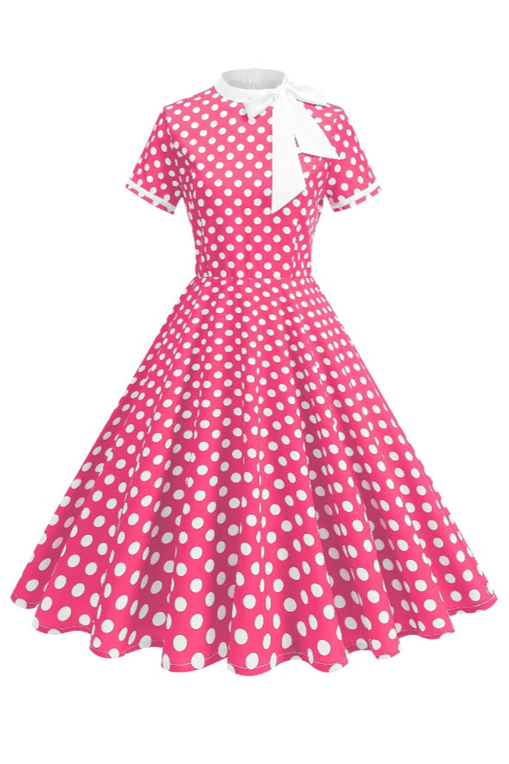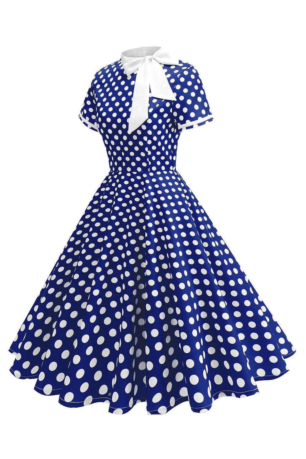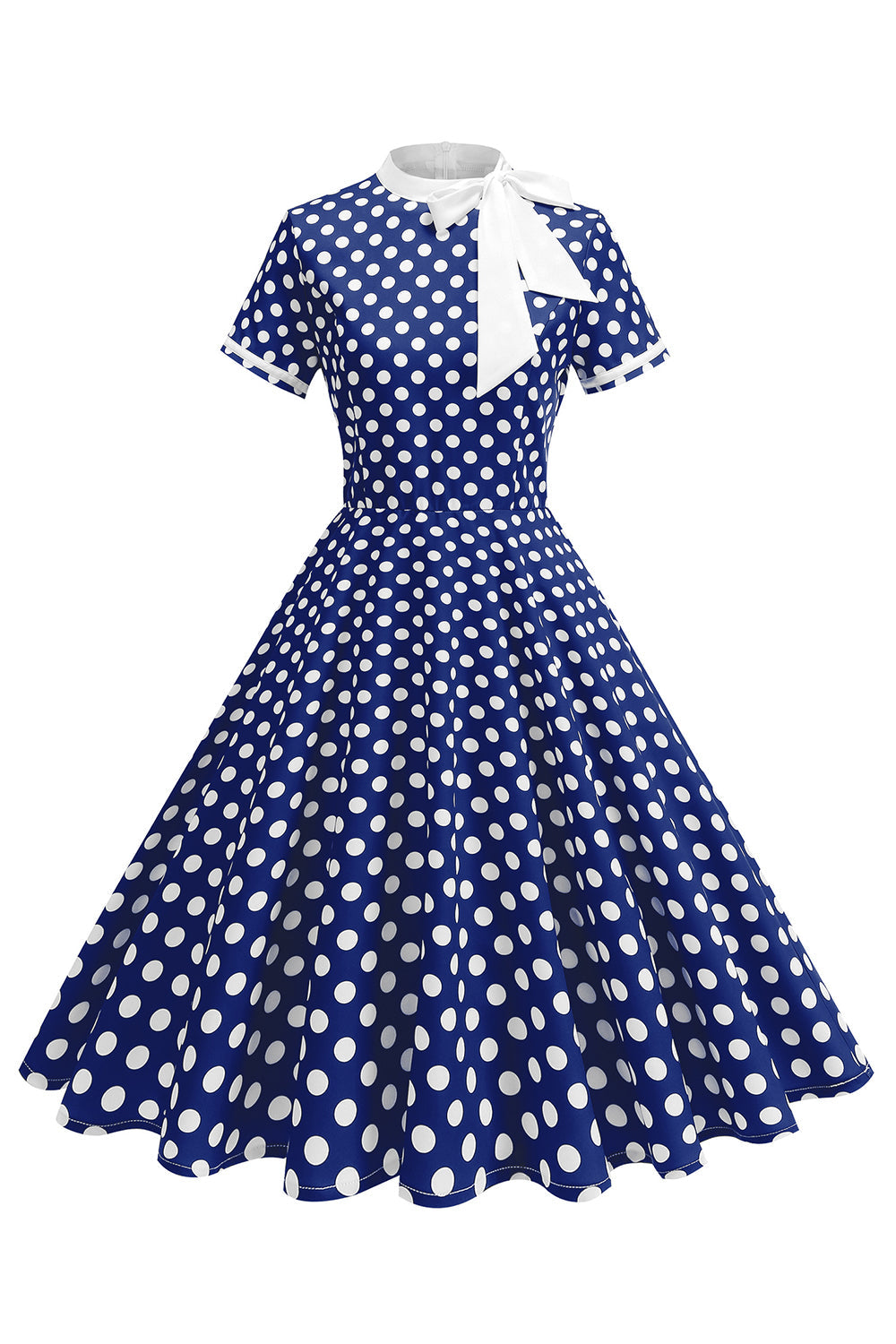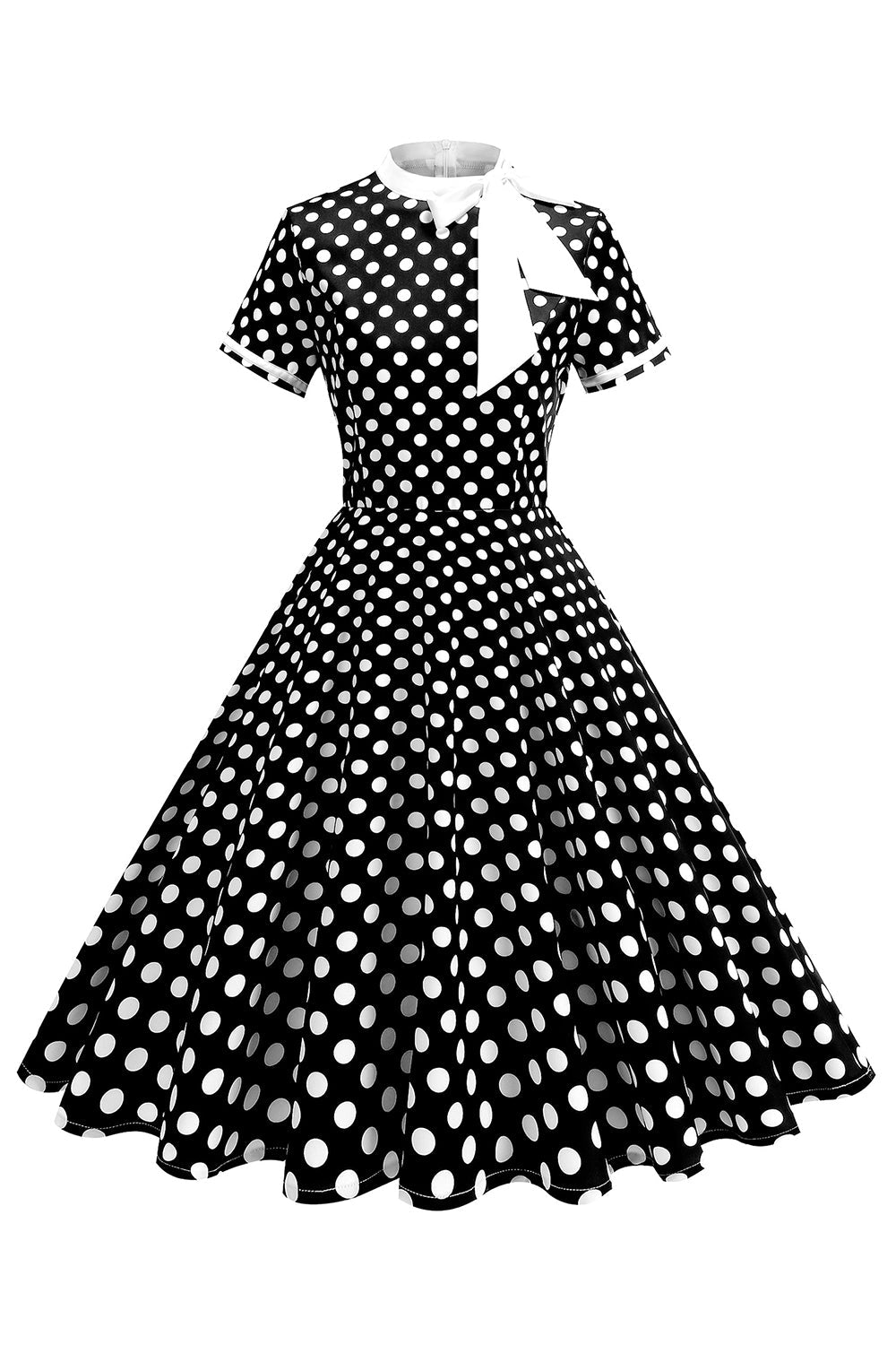 High Neck Black Polka Dots Bowed A Line 1950s Dress
