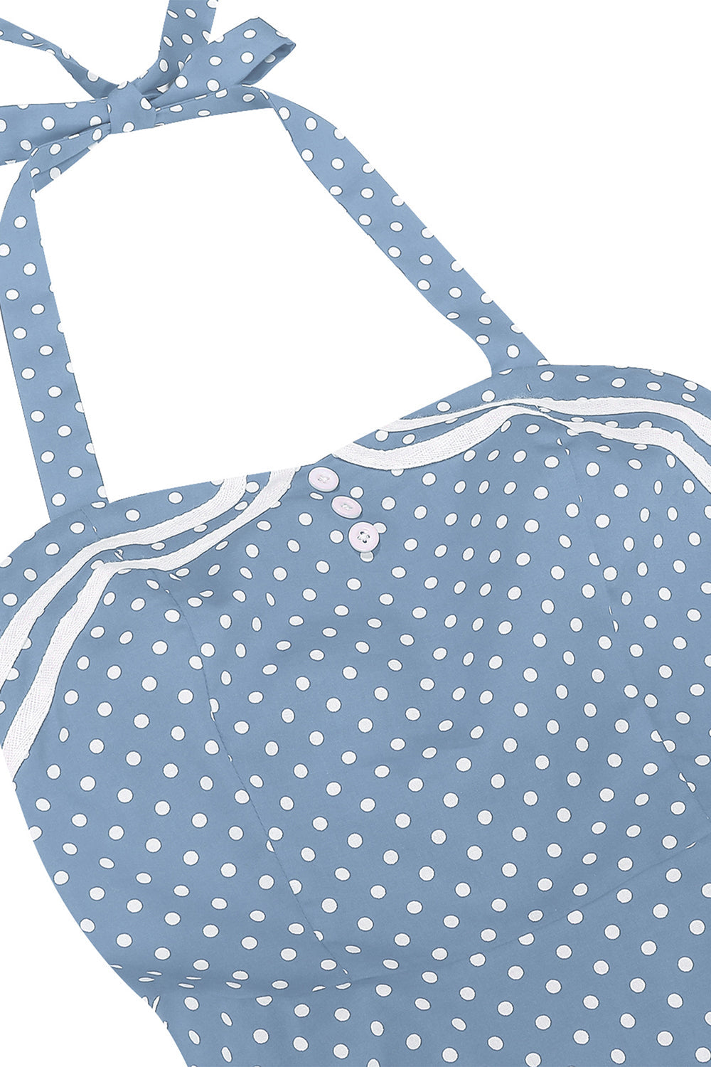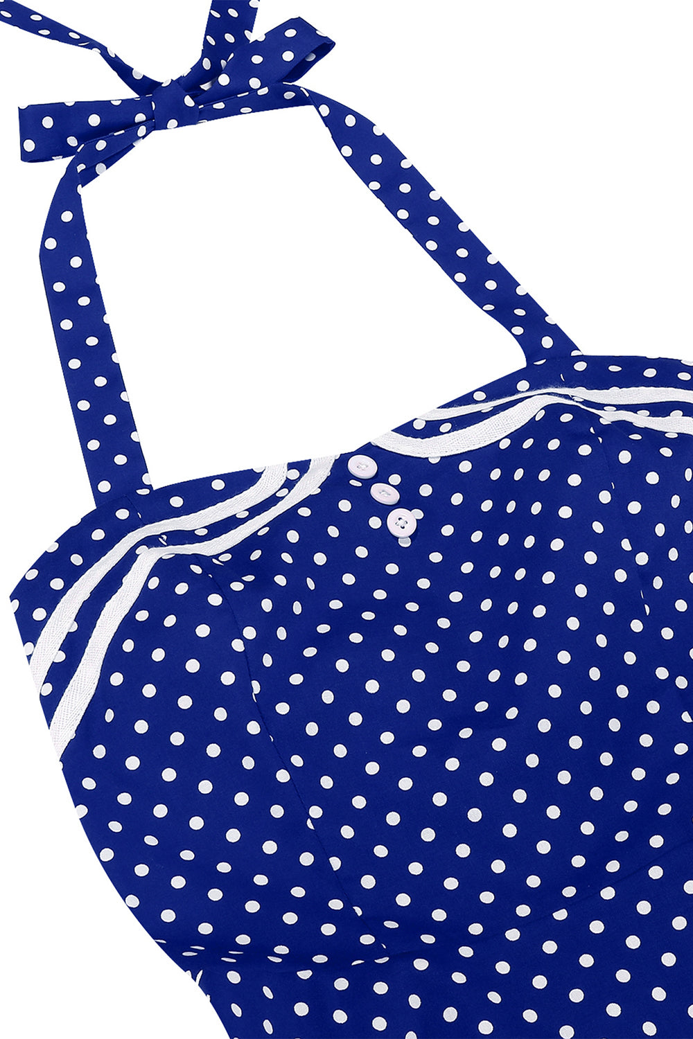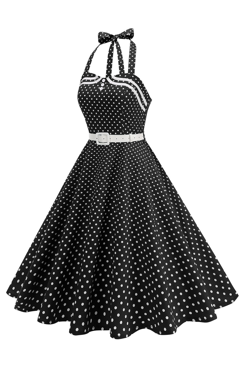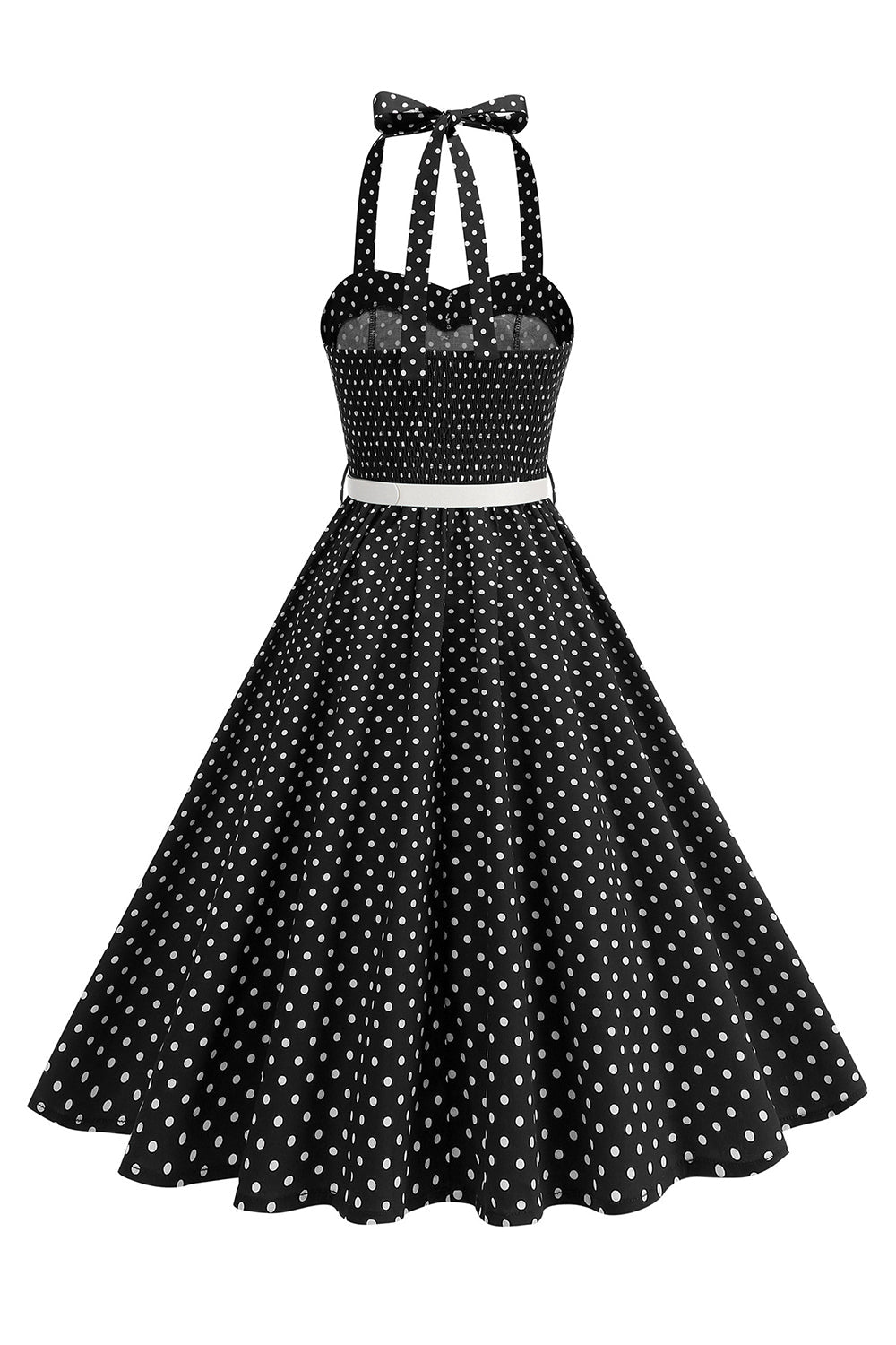Polka Dots Halter Black A Line 1950s Dress with Bow