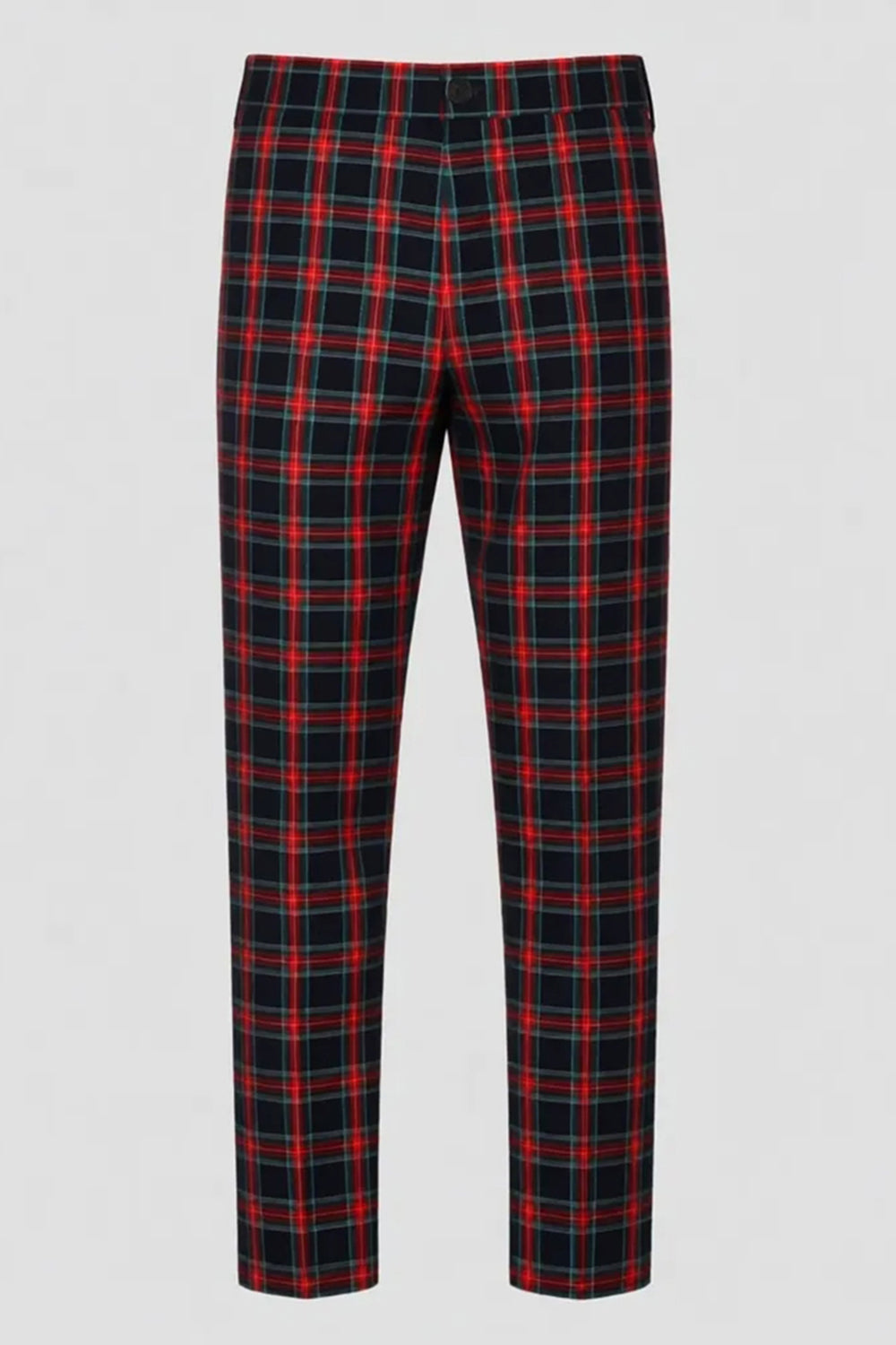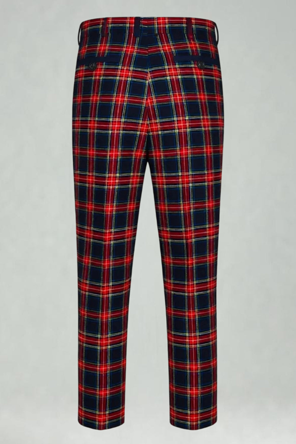 Black Red Grid Peak Lapel Double Breasted 2 Piece Men's Prom Suits