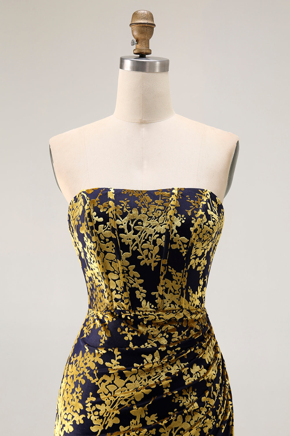 Burgundy Strapless Corset Burnout Velvet Bridesmaid Dress with Slit