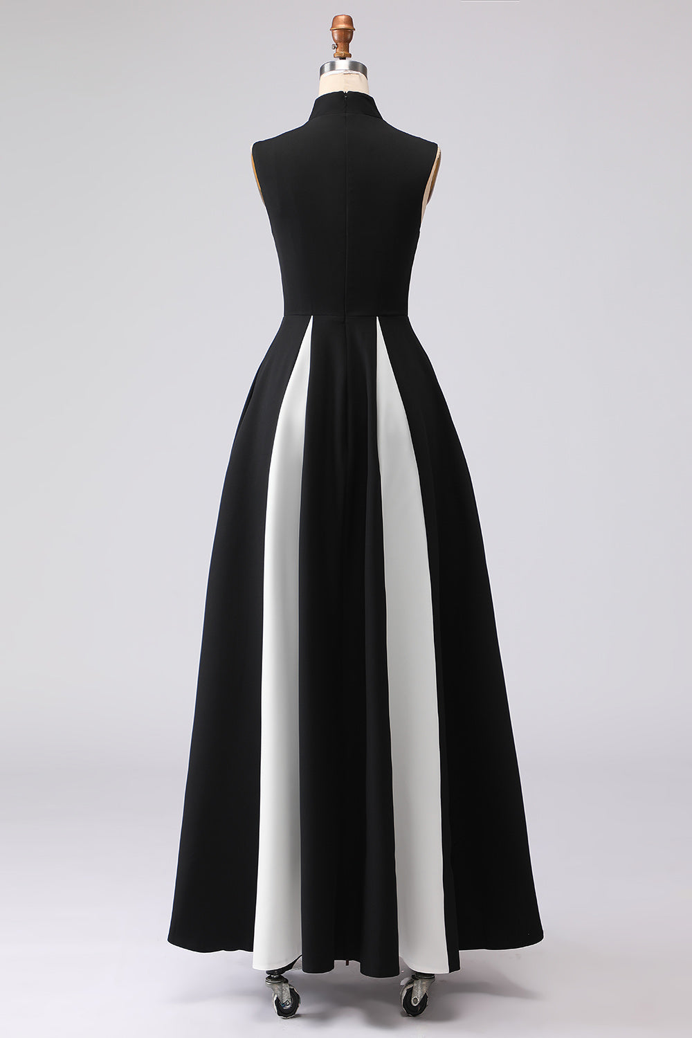 Elegant A-Line Black and White High Neck Long Formal Dress