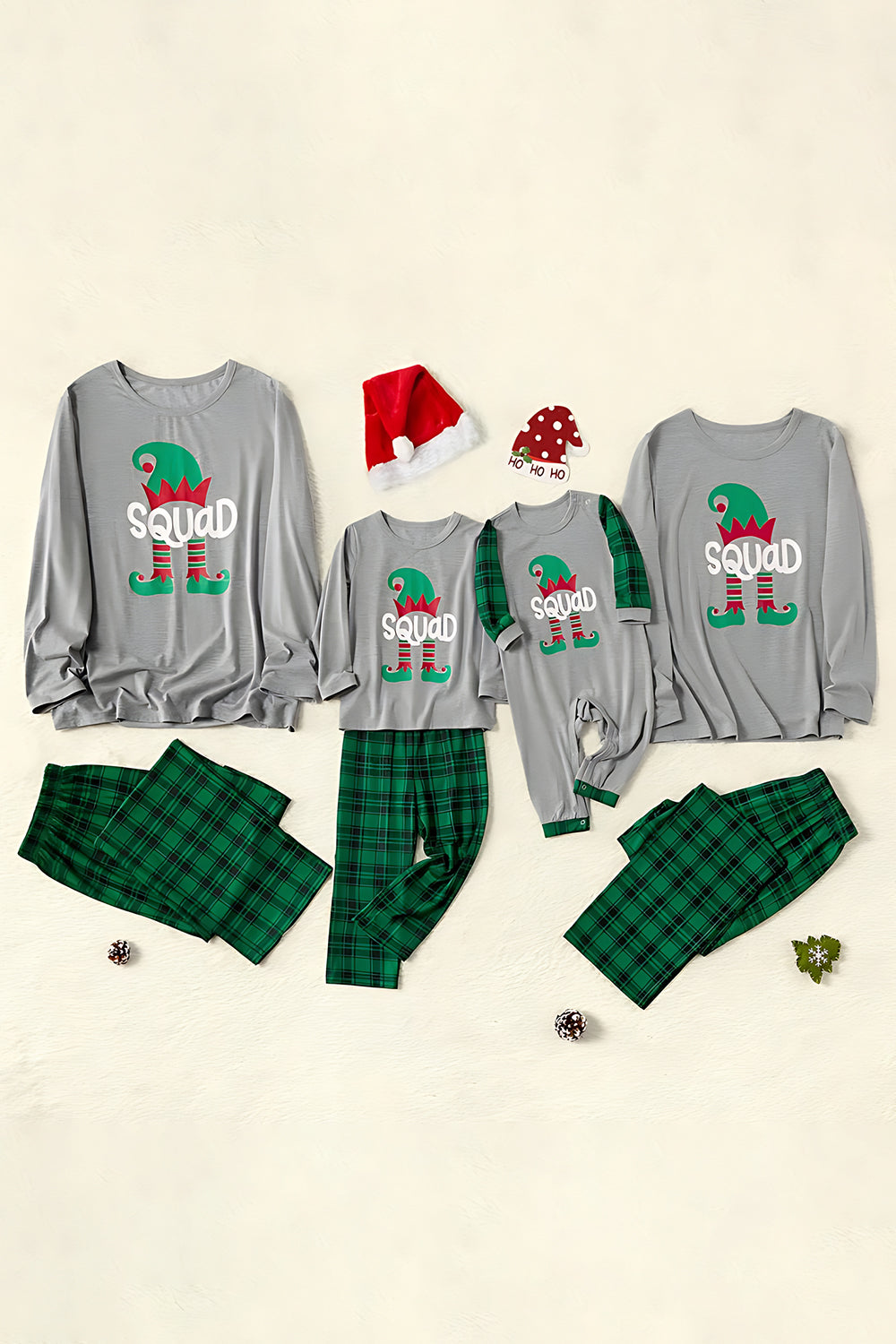 Grey Green Plaid Print Christmas Family Matching Pajamas Set