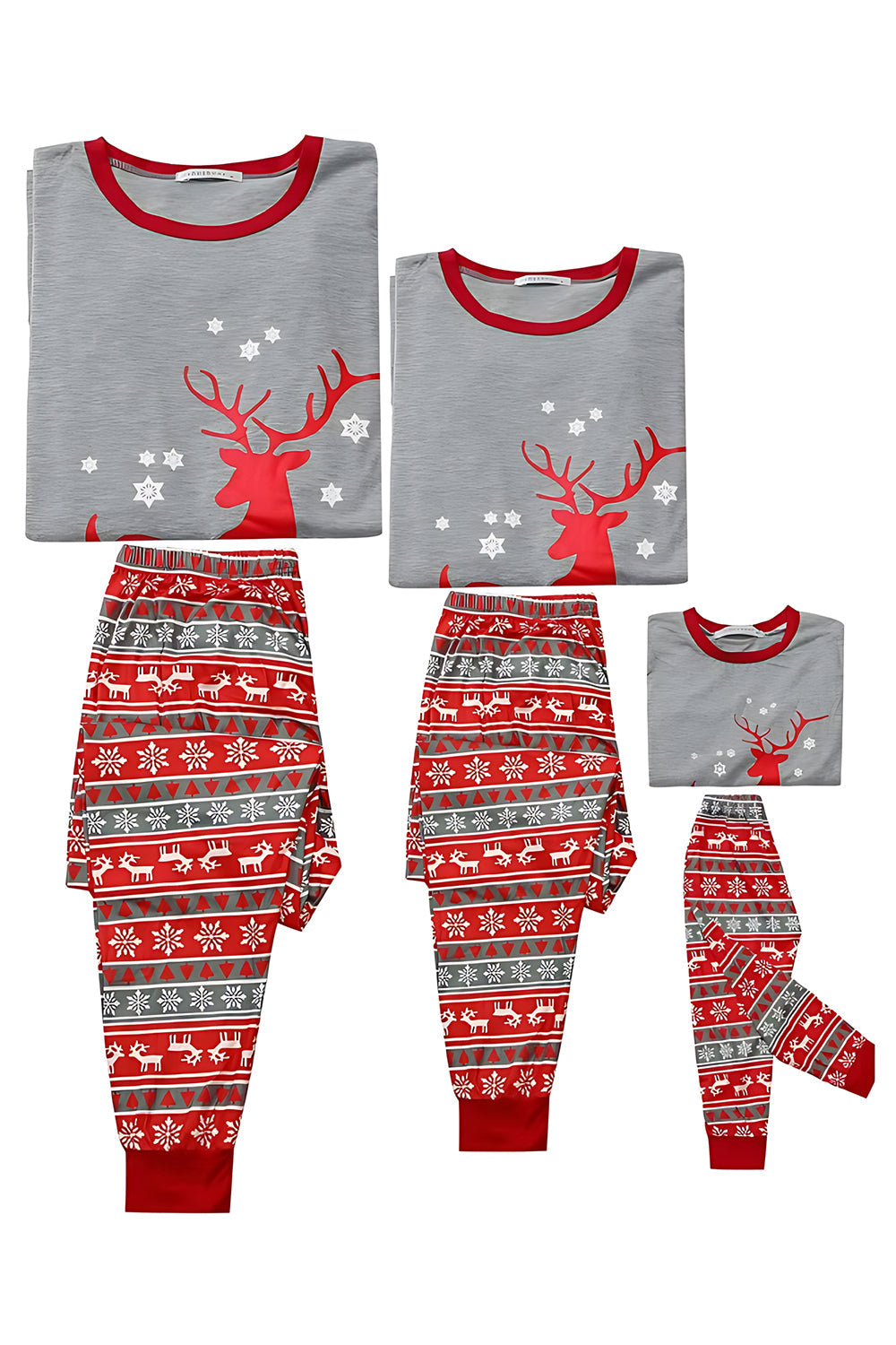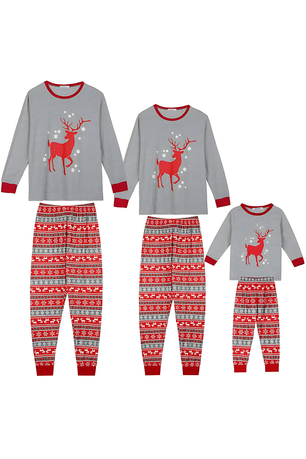 Grey Red Stripes Elk Print Christmas Family Matching Pajamas Set