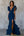 Off The Shoulder Ruffled Printed Blue Wedding Guest Dress with Slit