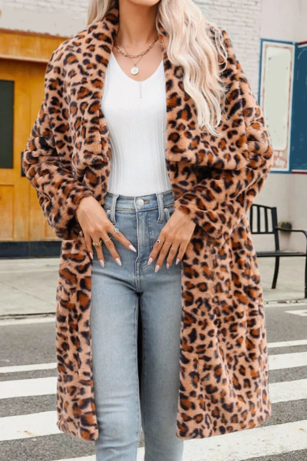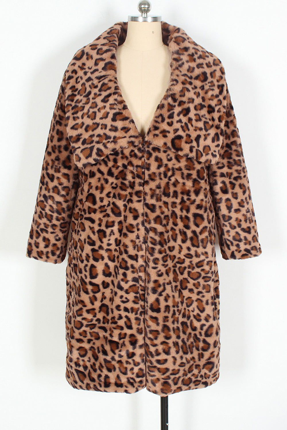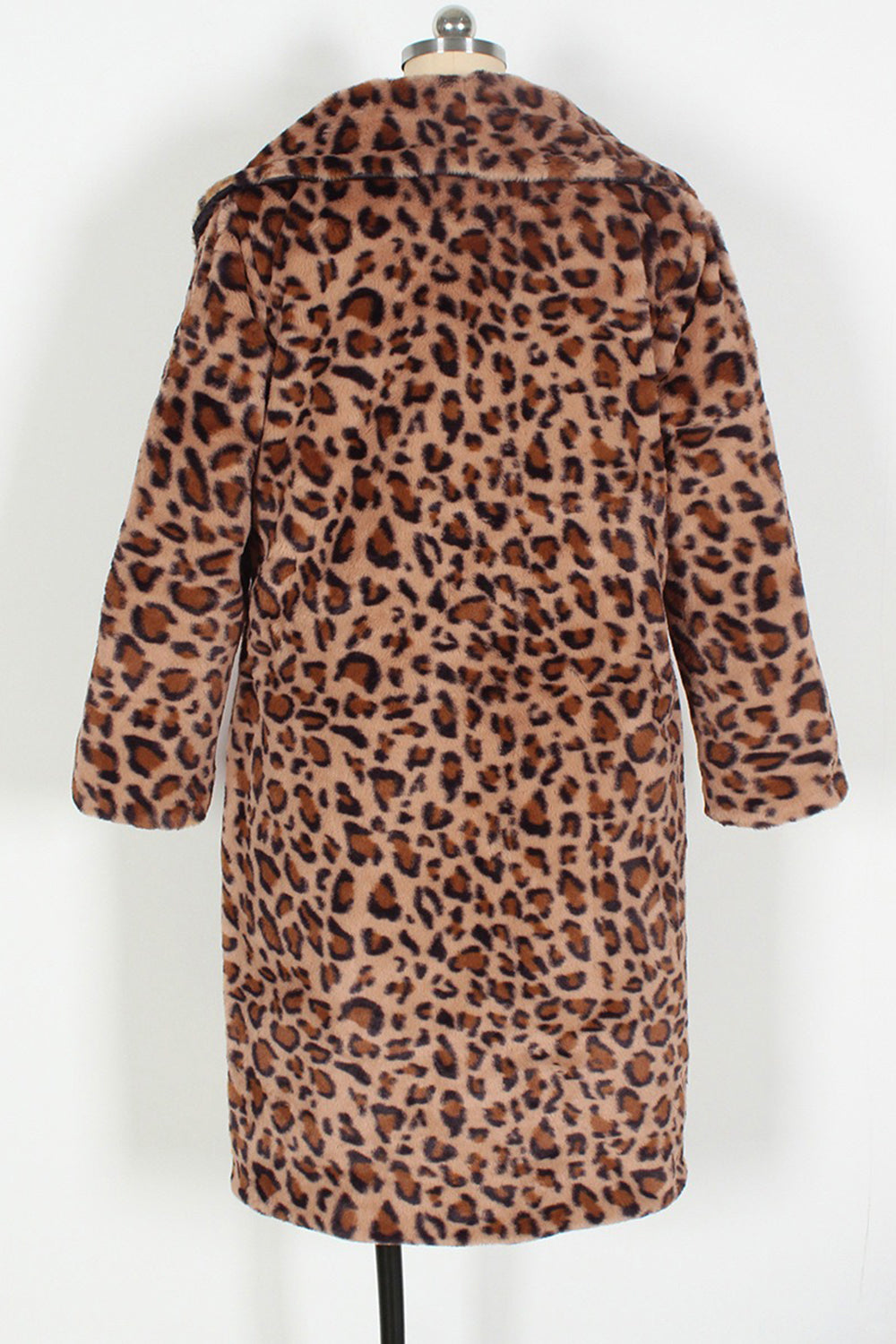 Brown Leopard Faux Fur Thickened Shawl Lapel Women Coat