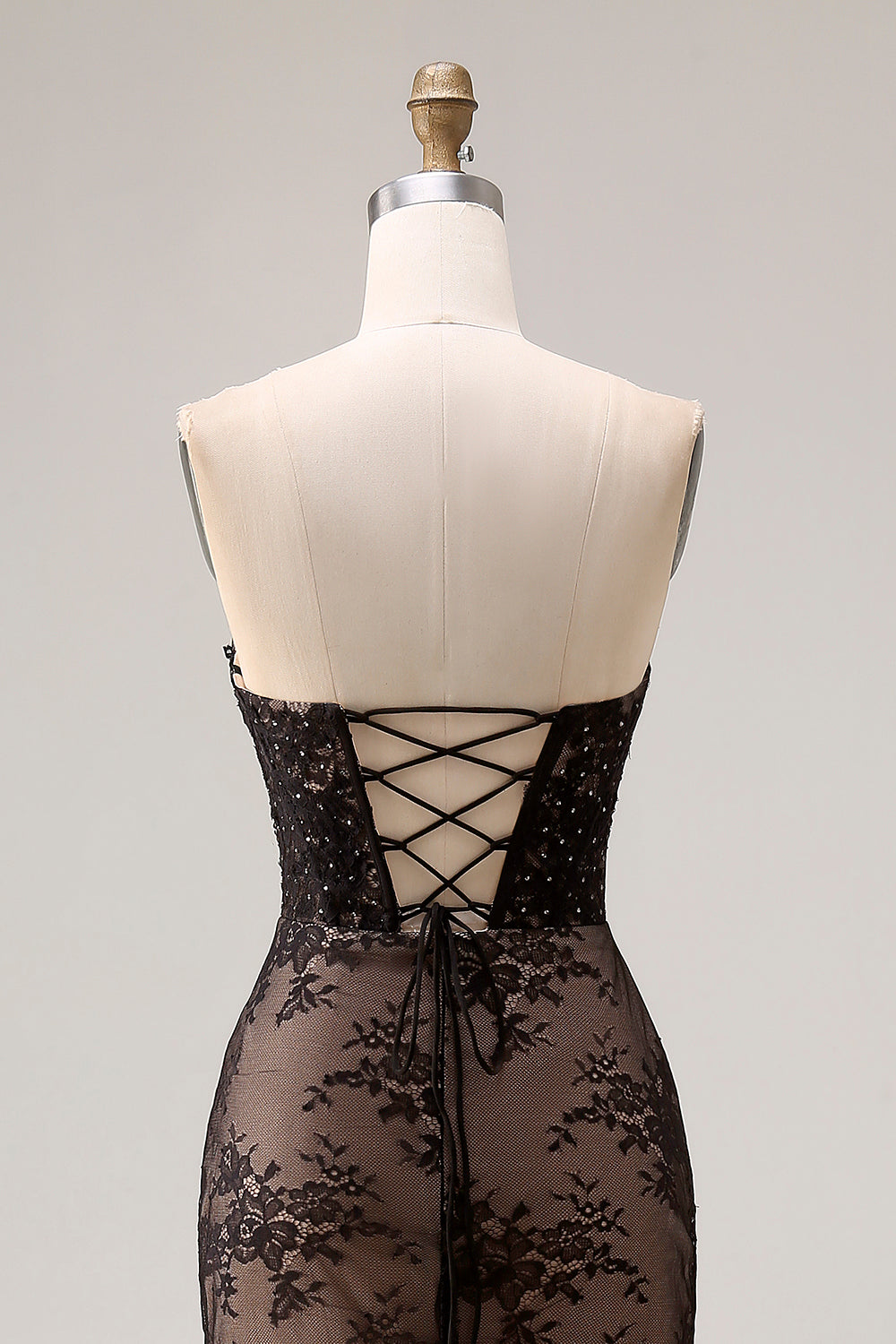 Strapless Mermaid Beaded Rose Black Lace Long Prom Dress with Slit