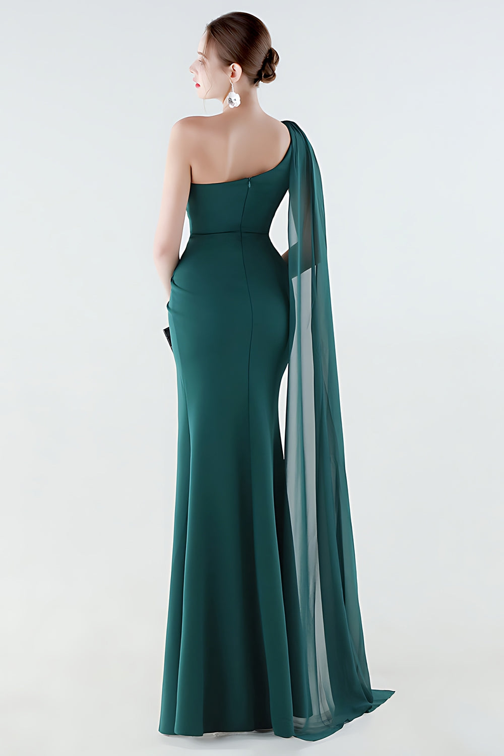 One Shoulder Mermaid Black Formal Dress with Streamer