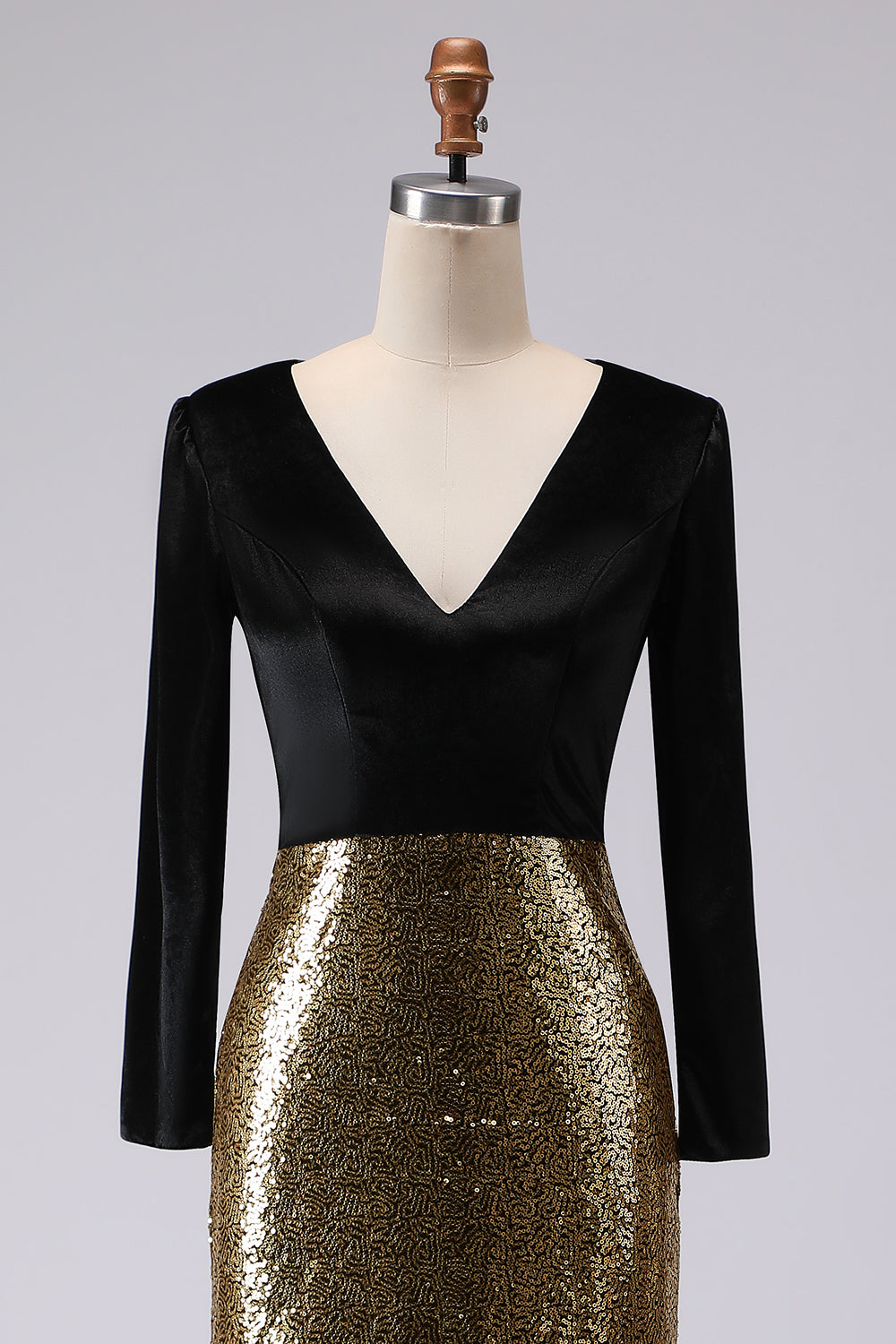 Sparkly Gold and Black V-Neck Sheath Long Formal Dress