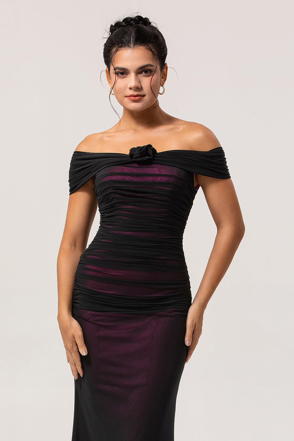 Black Pink Off the Shoulder Sheath Long Bridesmaid Dress