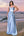 Blue White Flower Deep V Neck Streamer Backless Long Bridesmaid Dress with Slit