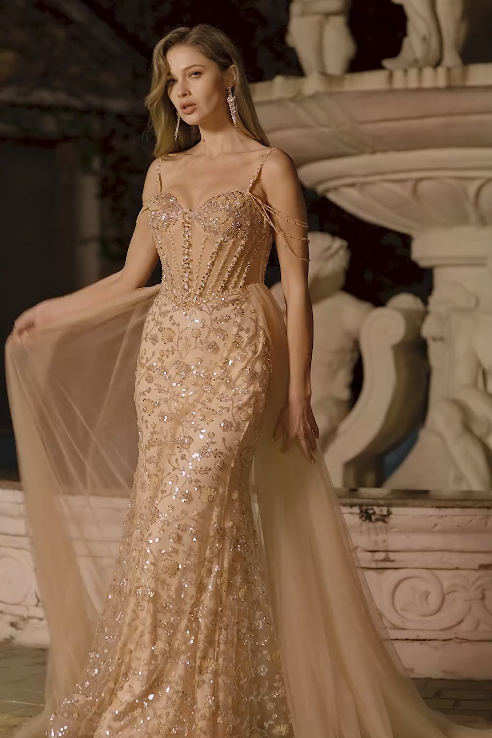 Sparkly Champagne Mermaid Corset Sequin Long Prom Dress with Beading
