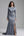 Dusty Blue Satin Sheath Long Sleeves Formal Dress with Rhinestones