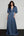 Navy Satin V Neck Ruched Long Sleeves Formal Dress