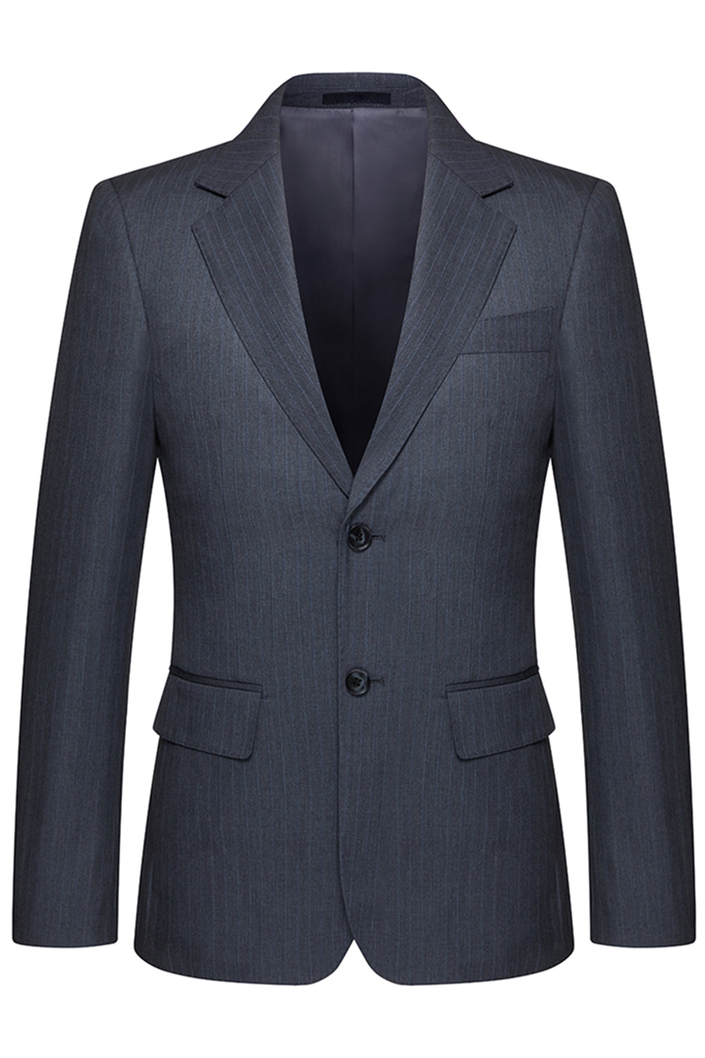 Grey Striped Notched Lapel 3 Piece Men's Suits
