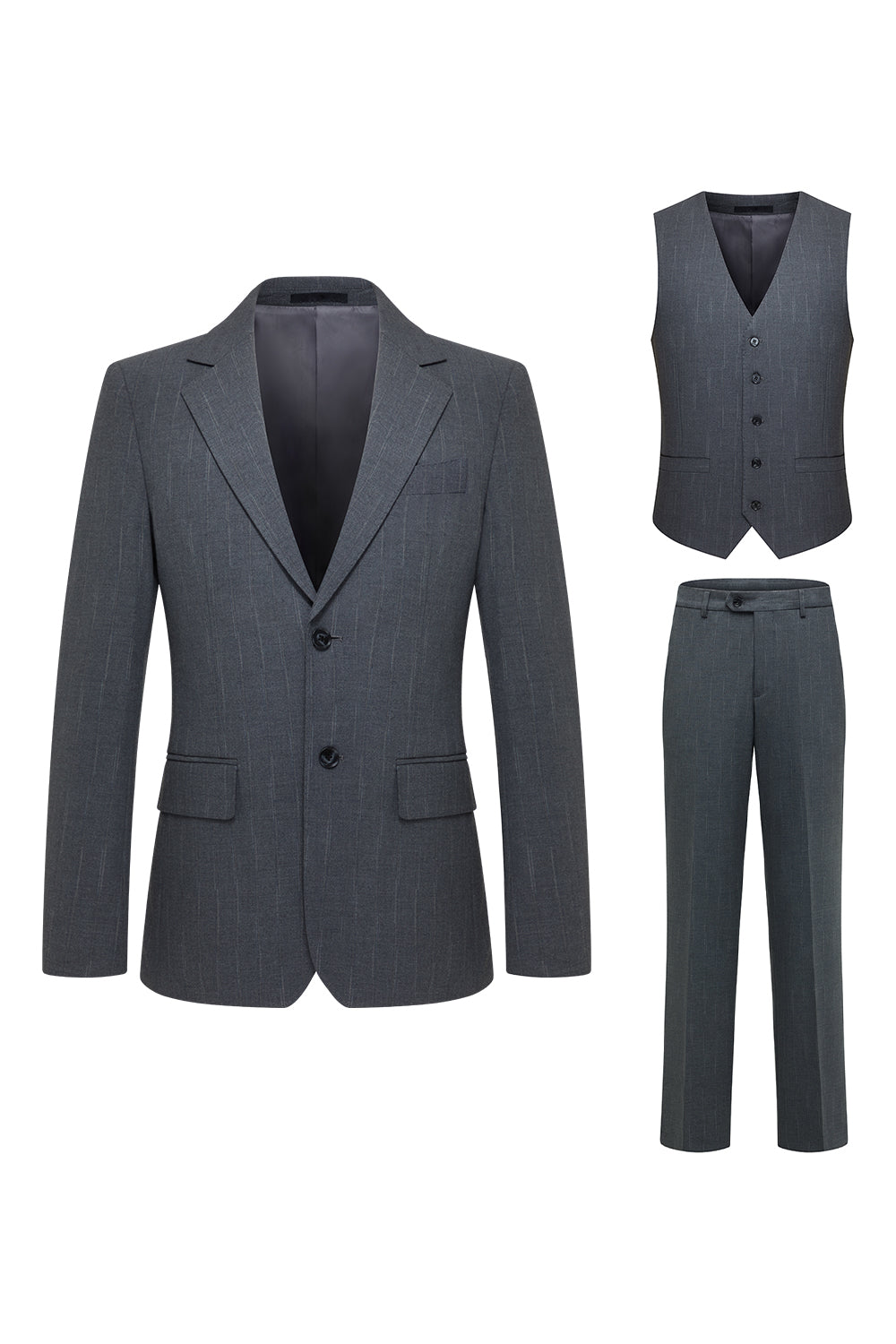 Single Breasted Grey Notched Lapel Men's 3 Piece Suits