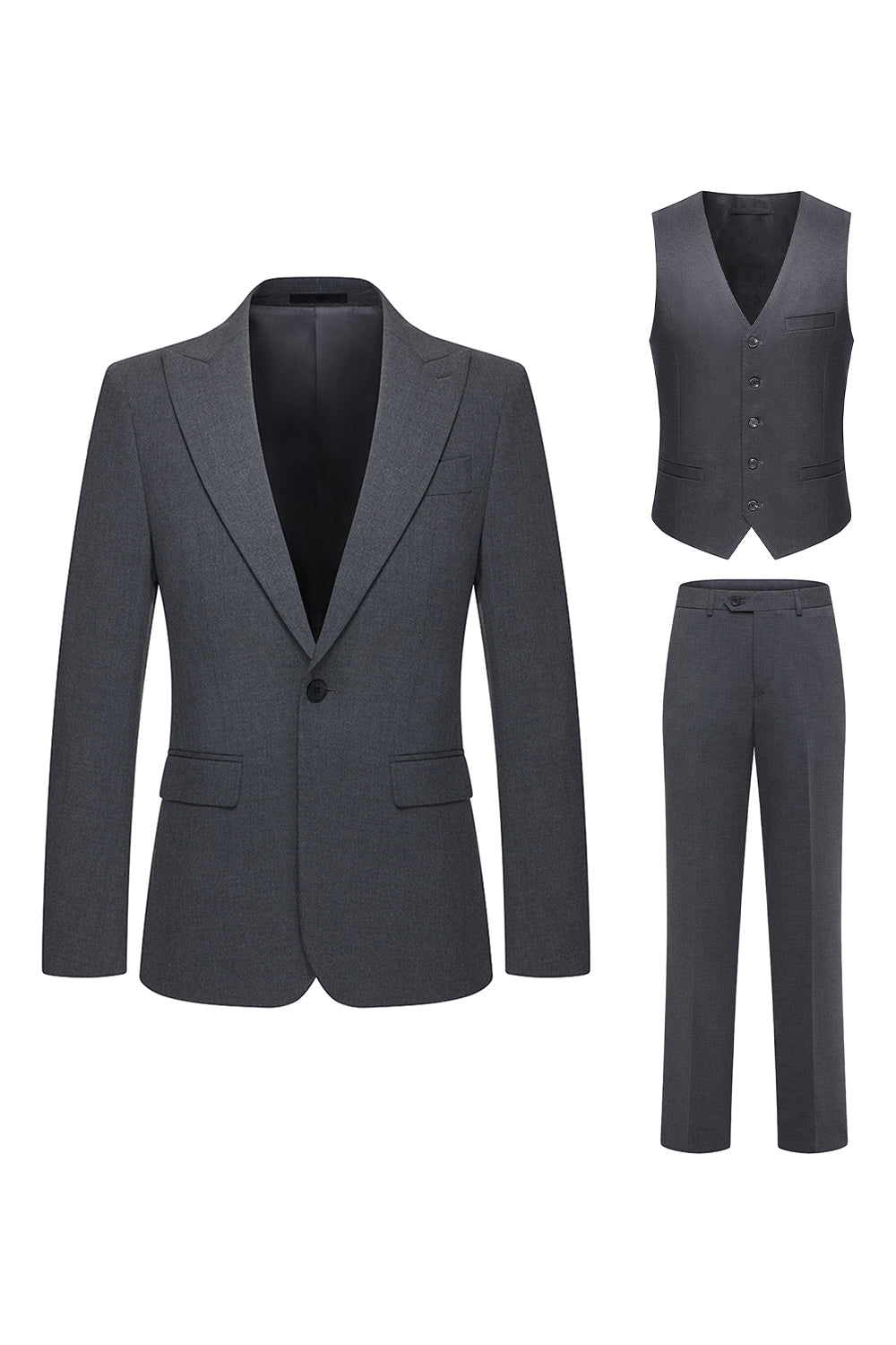 Slim Fit Peak Lapel Men's 3 Piece Grey Suits