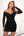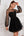 Black Square Neck Corset Ruched Backless Short Cocktail Dress with Long Sleeves