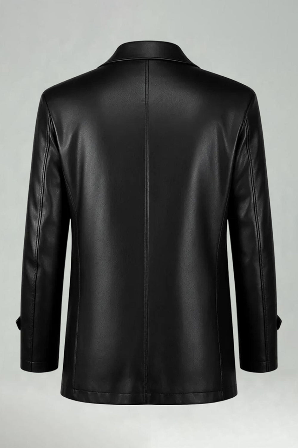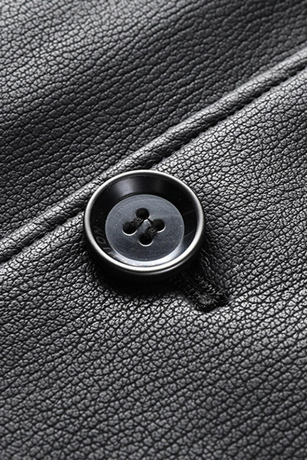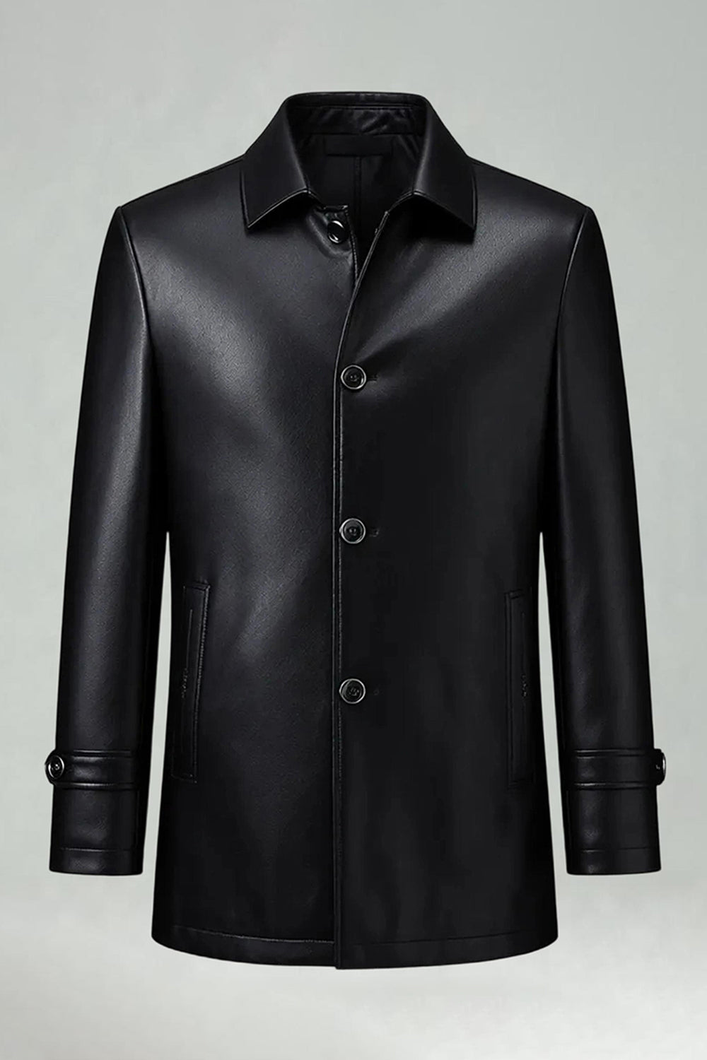 Black Lapel Leather Single Breasted Men's Trench Coat