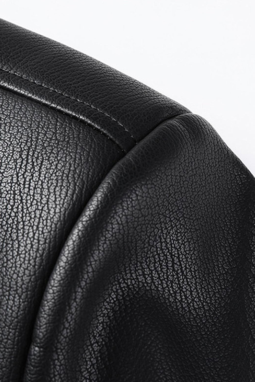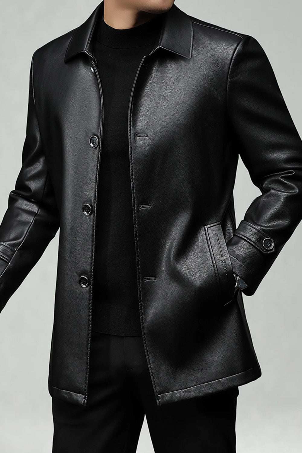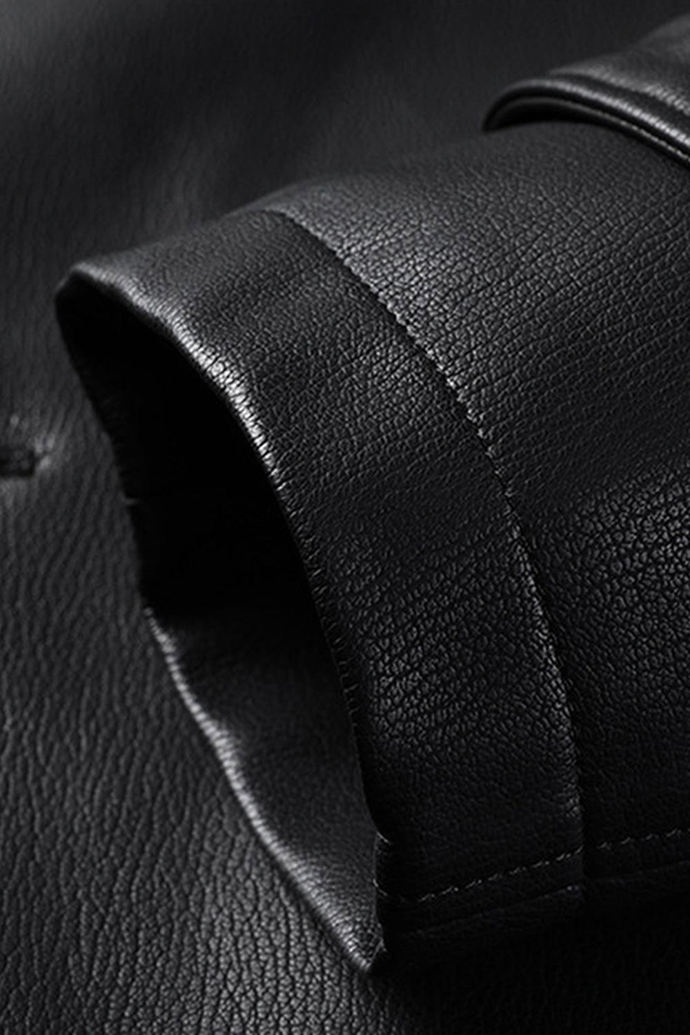 Black Lapel Leather Single Breasted Men's Trench Coat