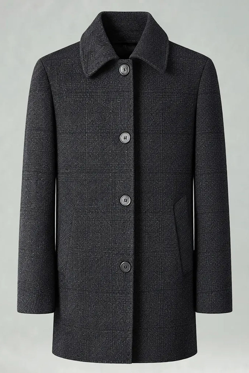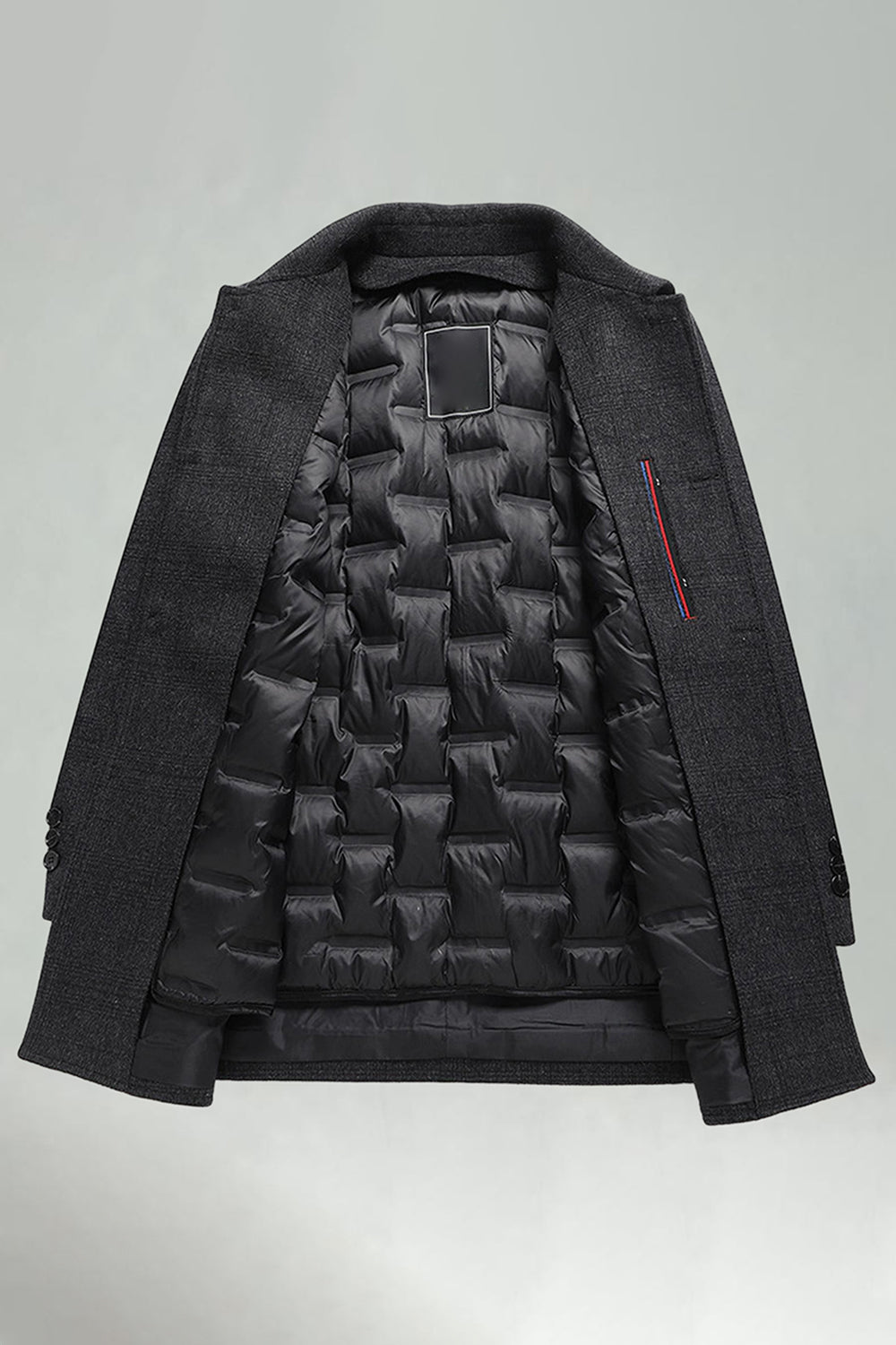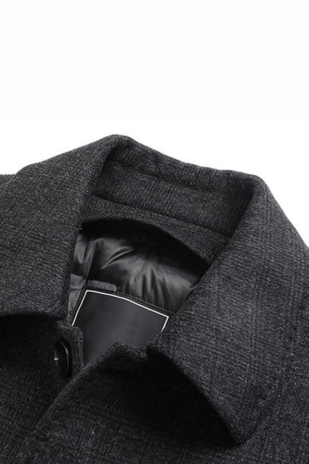 Dark Grey Lapel Single Breasted Long Men's Winter Coat