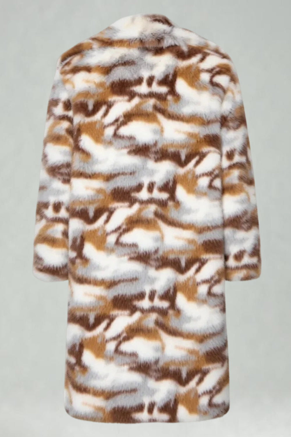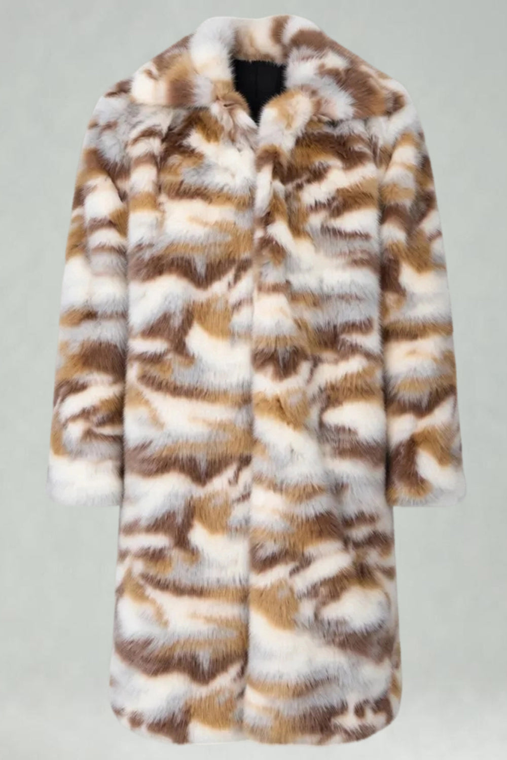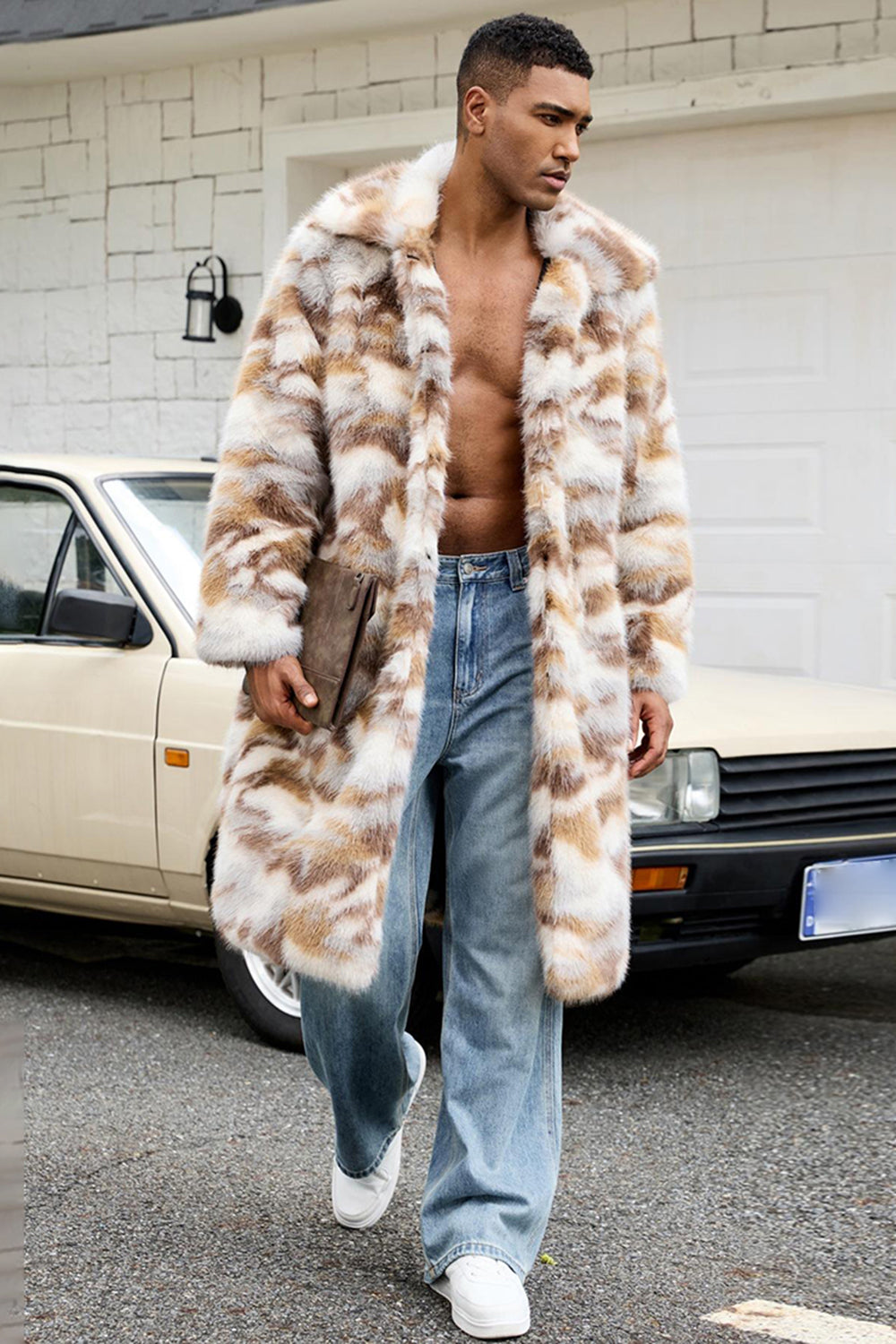 Men's Apricot Camo Faux Fur Shawl Collar Long Coat