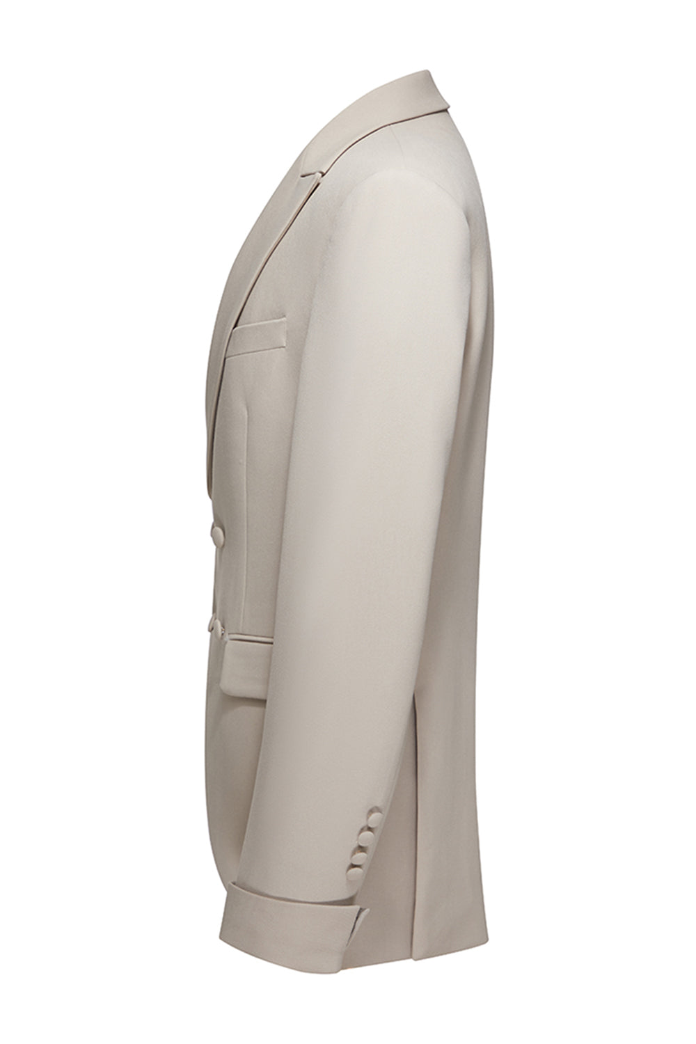 2 Piece Khaki Peak Lapel Slim Fit Men's Suits