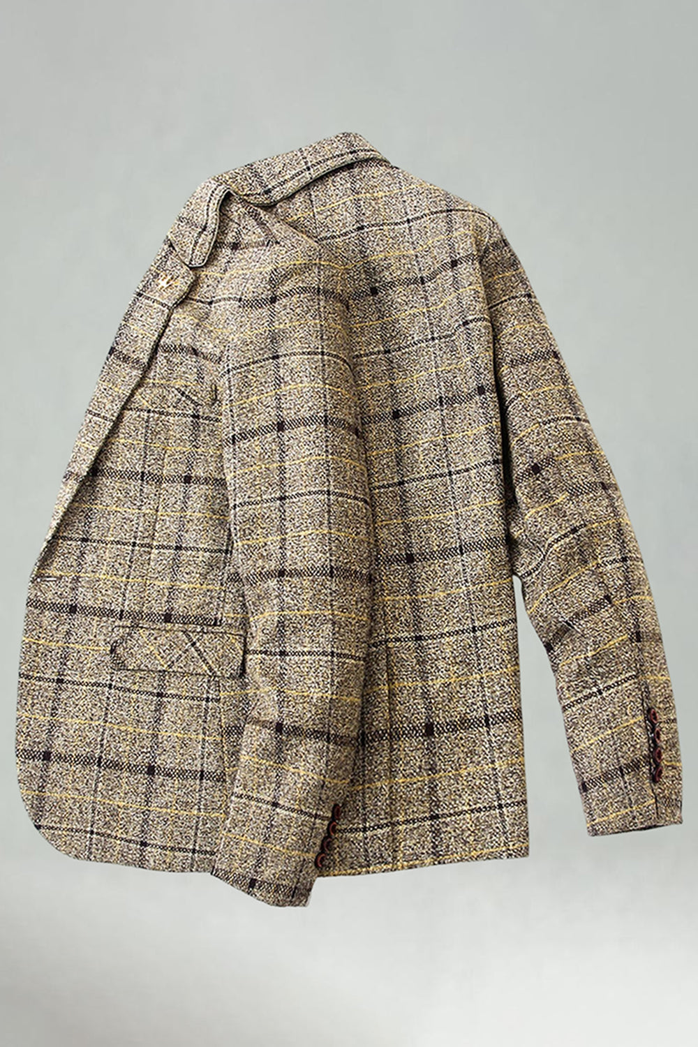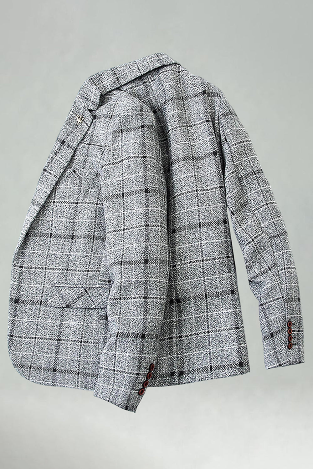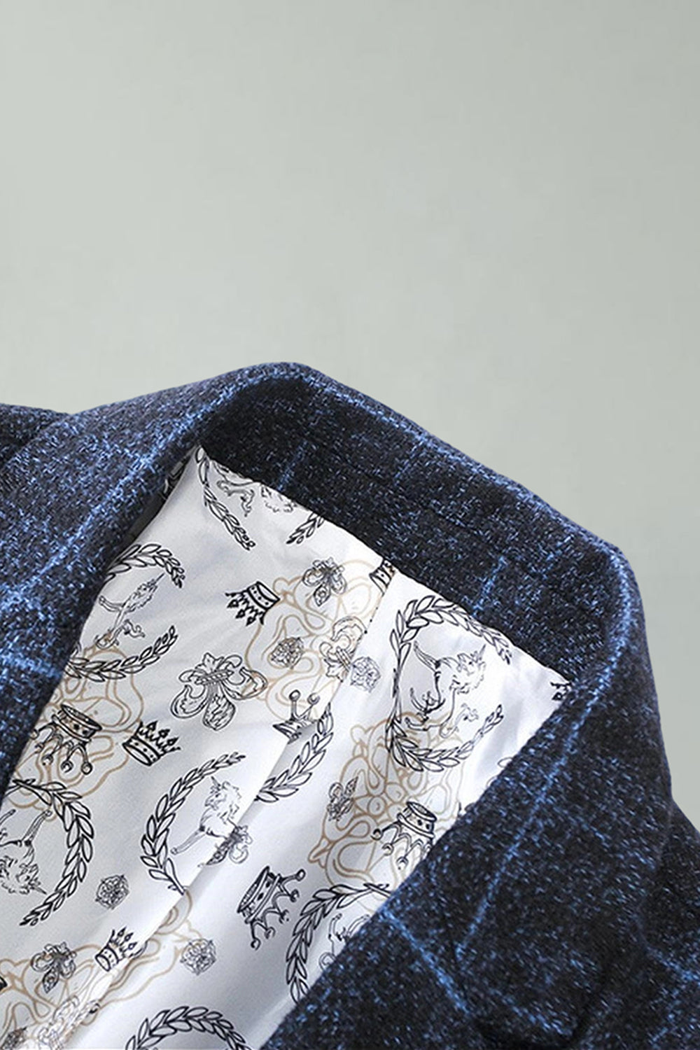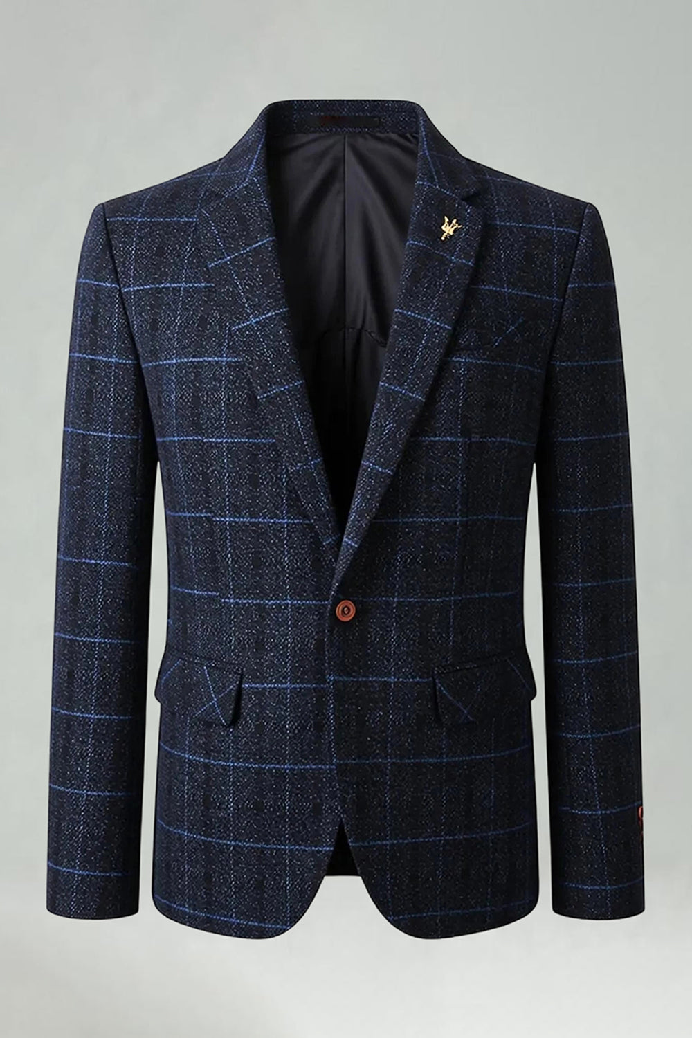 Checkered Notched Lapel Navy Men's Prom Blazer