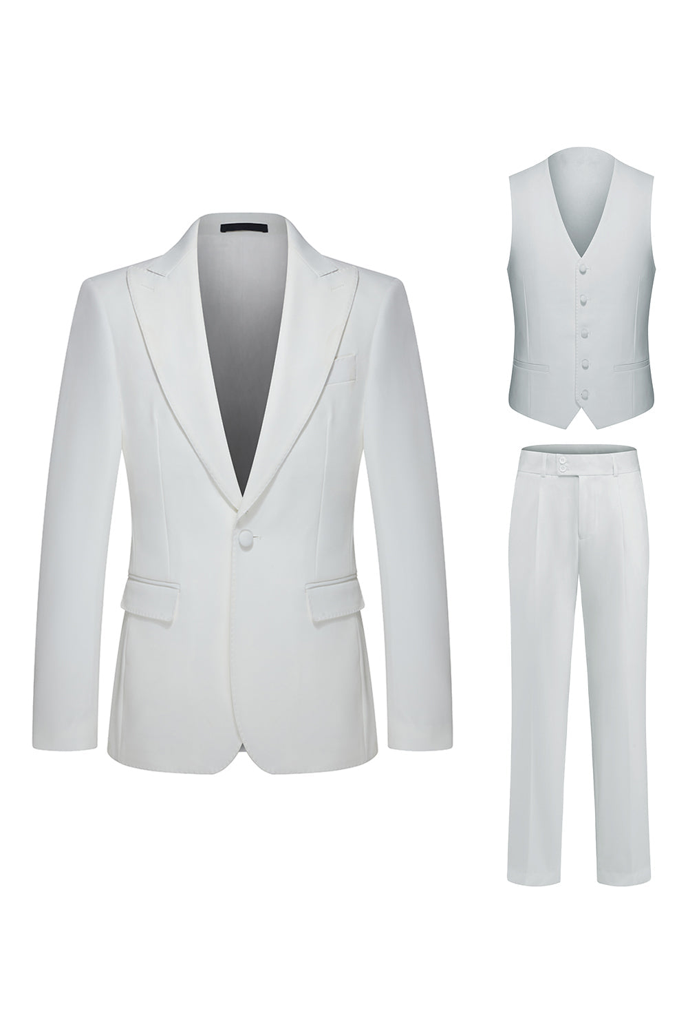 Peak Lapel 3 Piece One Button White Men's Wedding Suits
