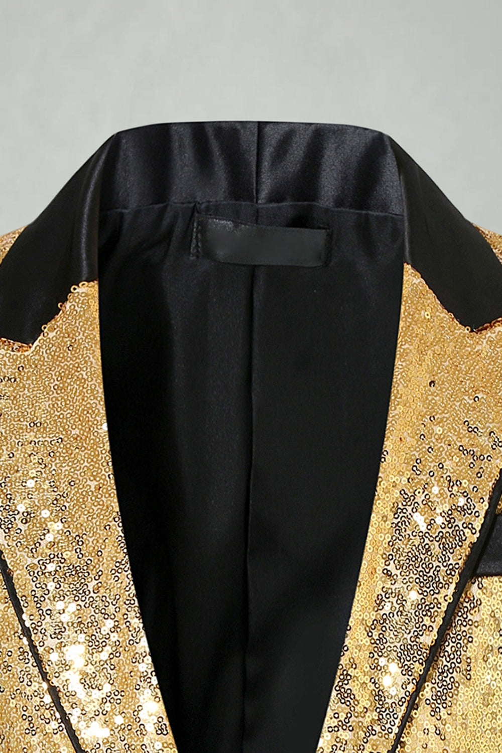 Sparkly Gold Peak Lapel Men's Prom Blazer