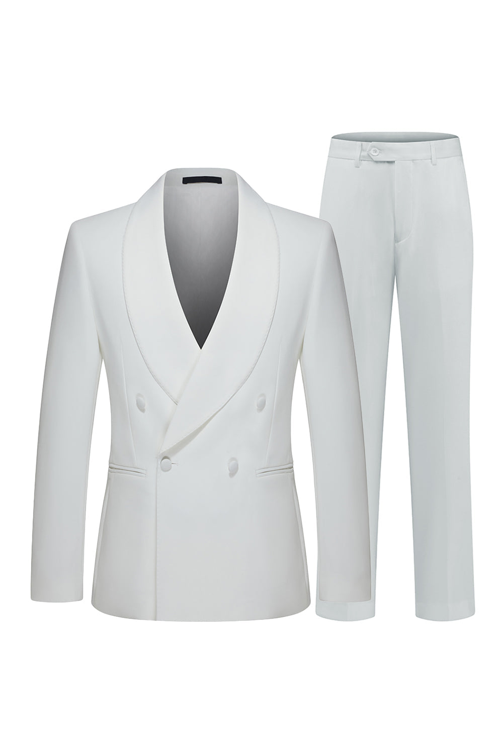 White 2 Piece Men's Shawl Lapel Double Breasted Wedding Suits