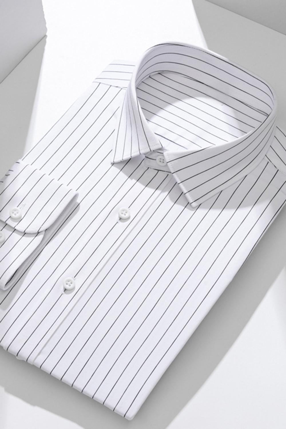 White Stripe Slim Fit Long Sleeves Men's Suits Shirt