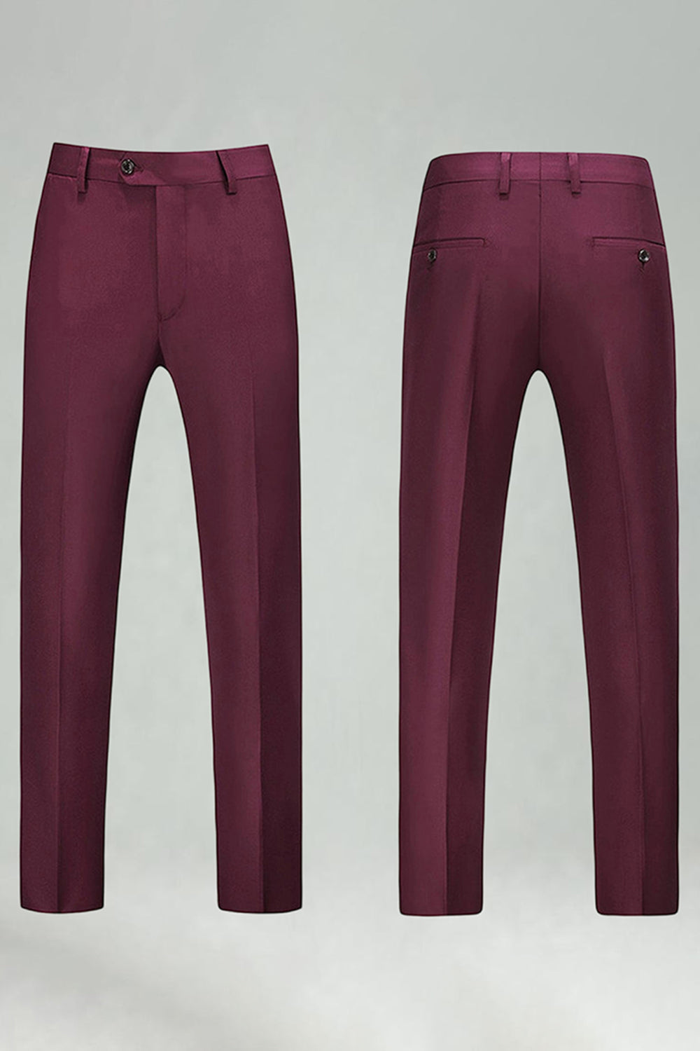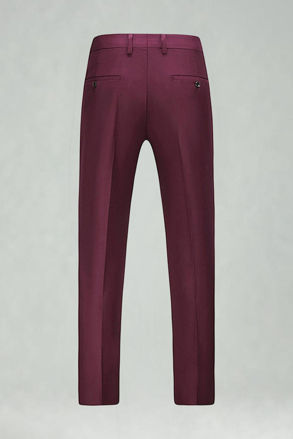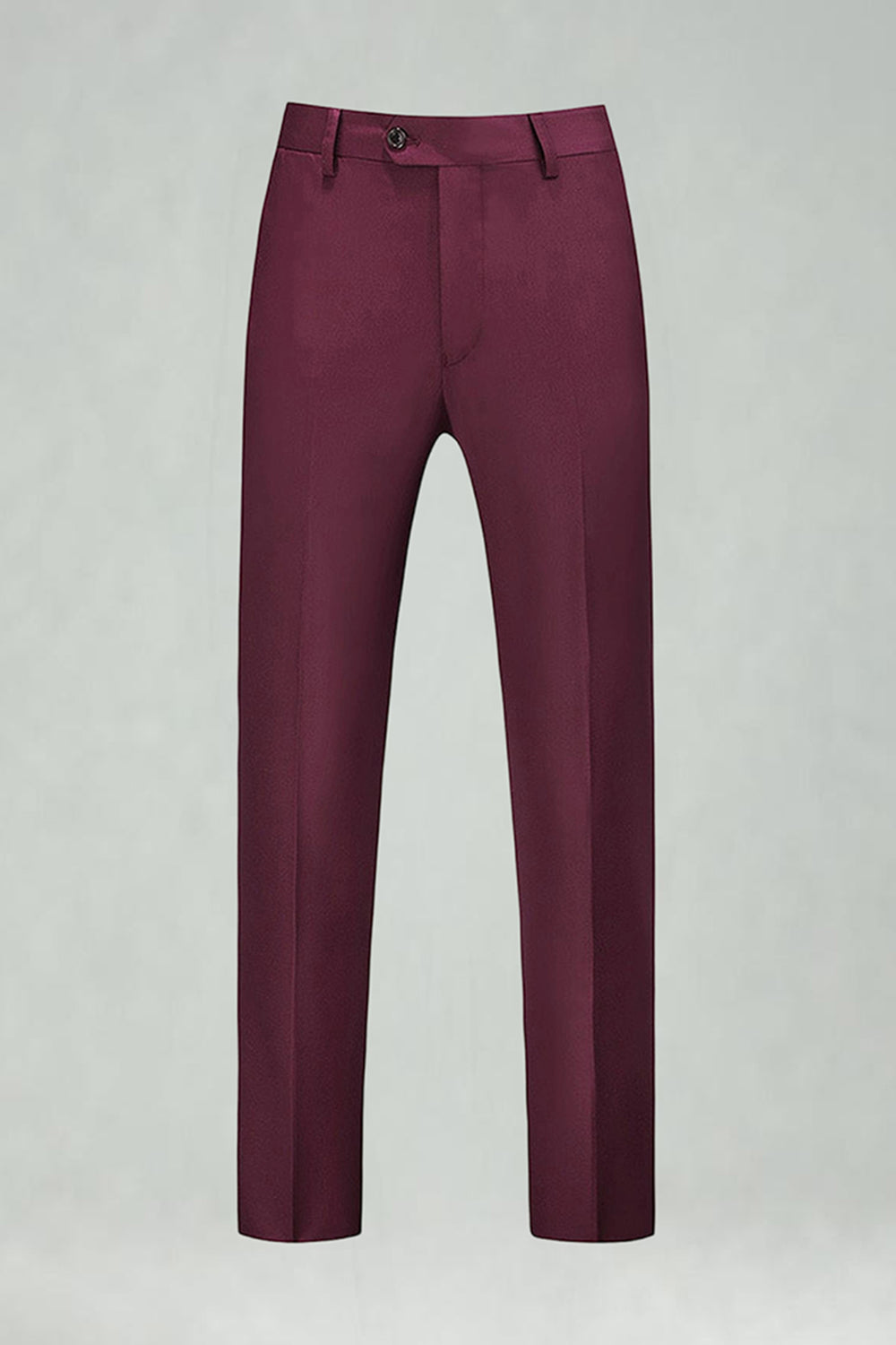 Burgundy Red High Waisted Men's Suits Pants for Wedding
