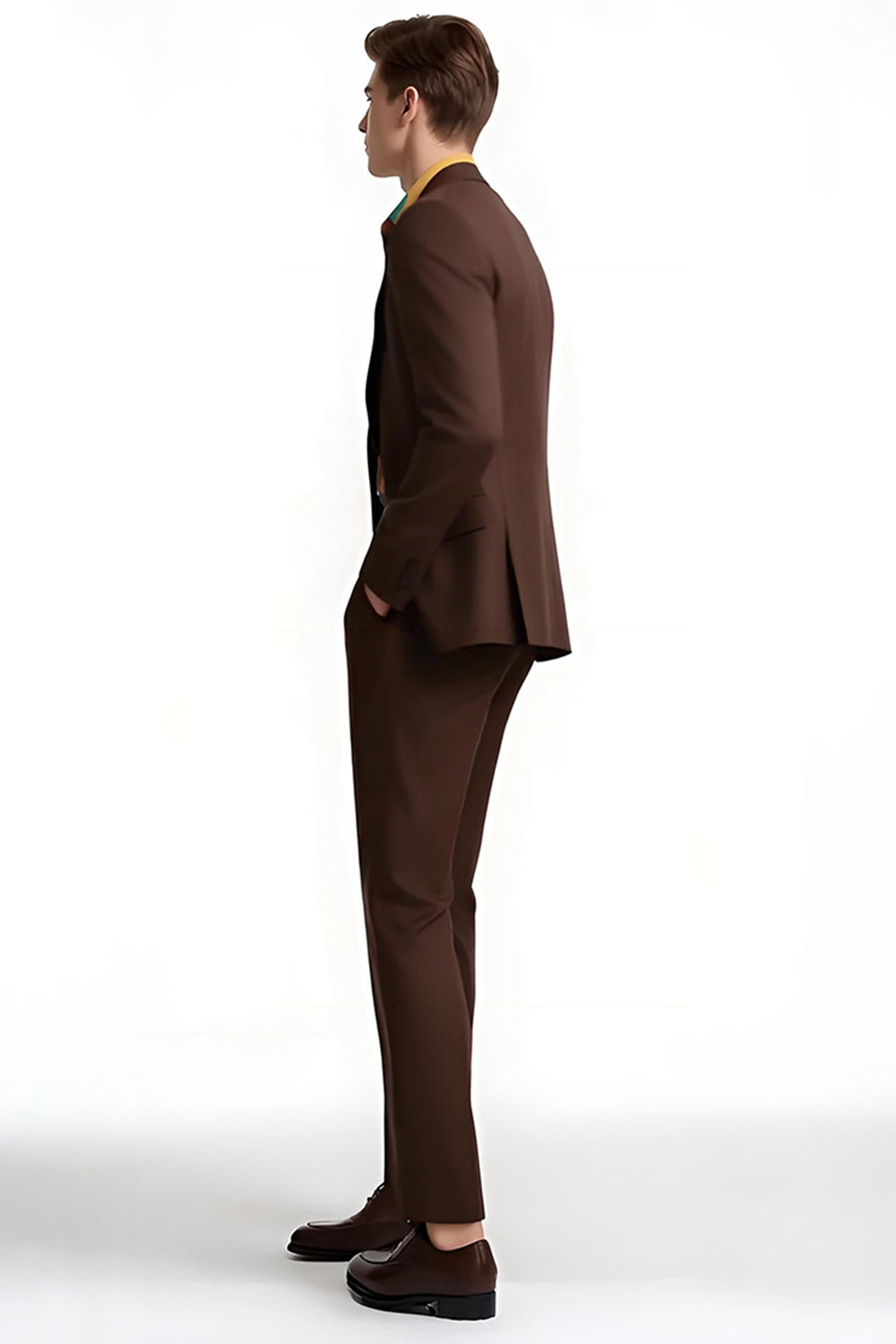 Dark Brown Notched Lapel Slim Fit Prom Suits