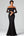 Black Matte Satin Contrast Sheath Off the Shoulder Formal Dress