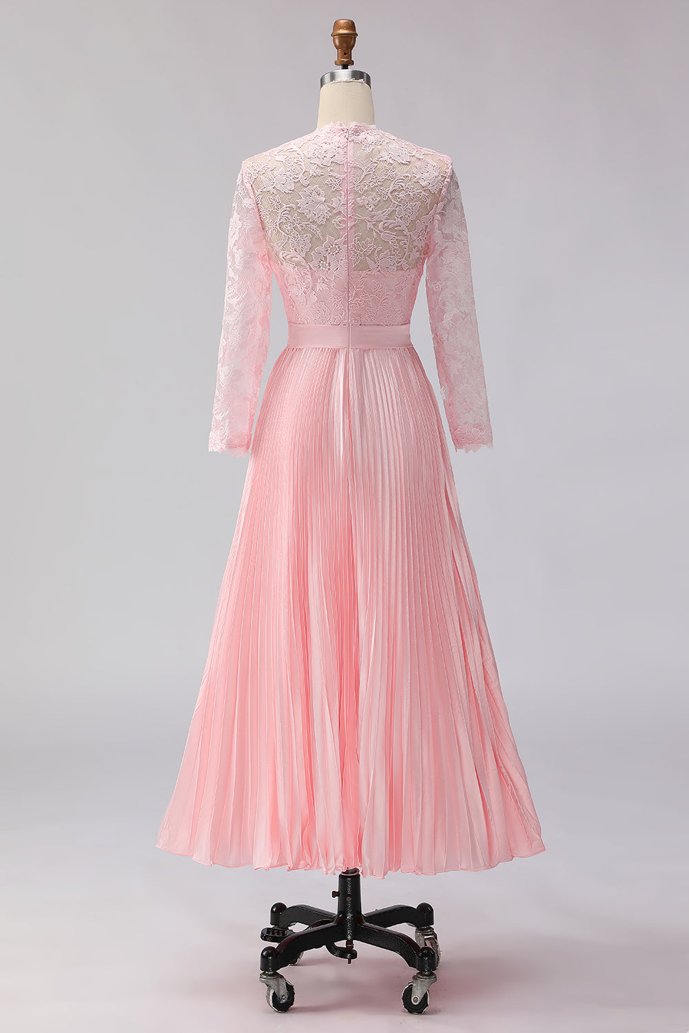 Blush Pink Chiffon A Line Pleated Midi Mother of the Bride Dress with Lace
