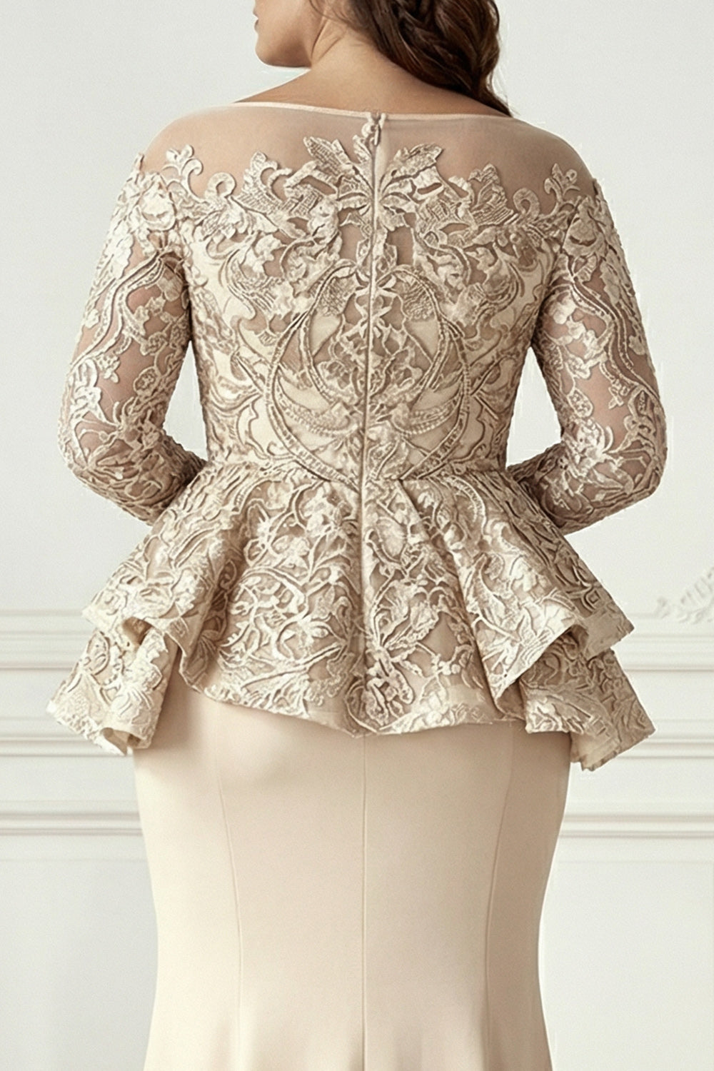 Champagne Mermaid Ruffled Long Sleeves Plus Size Mother of the Bride Dress