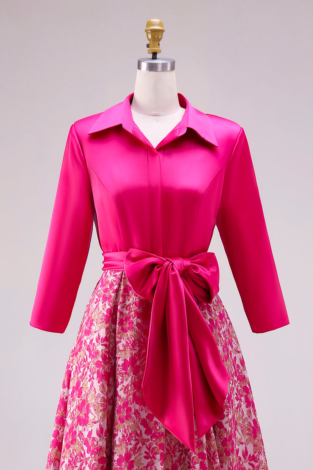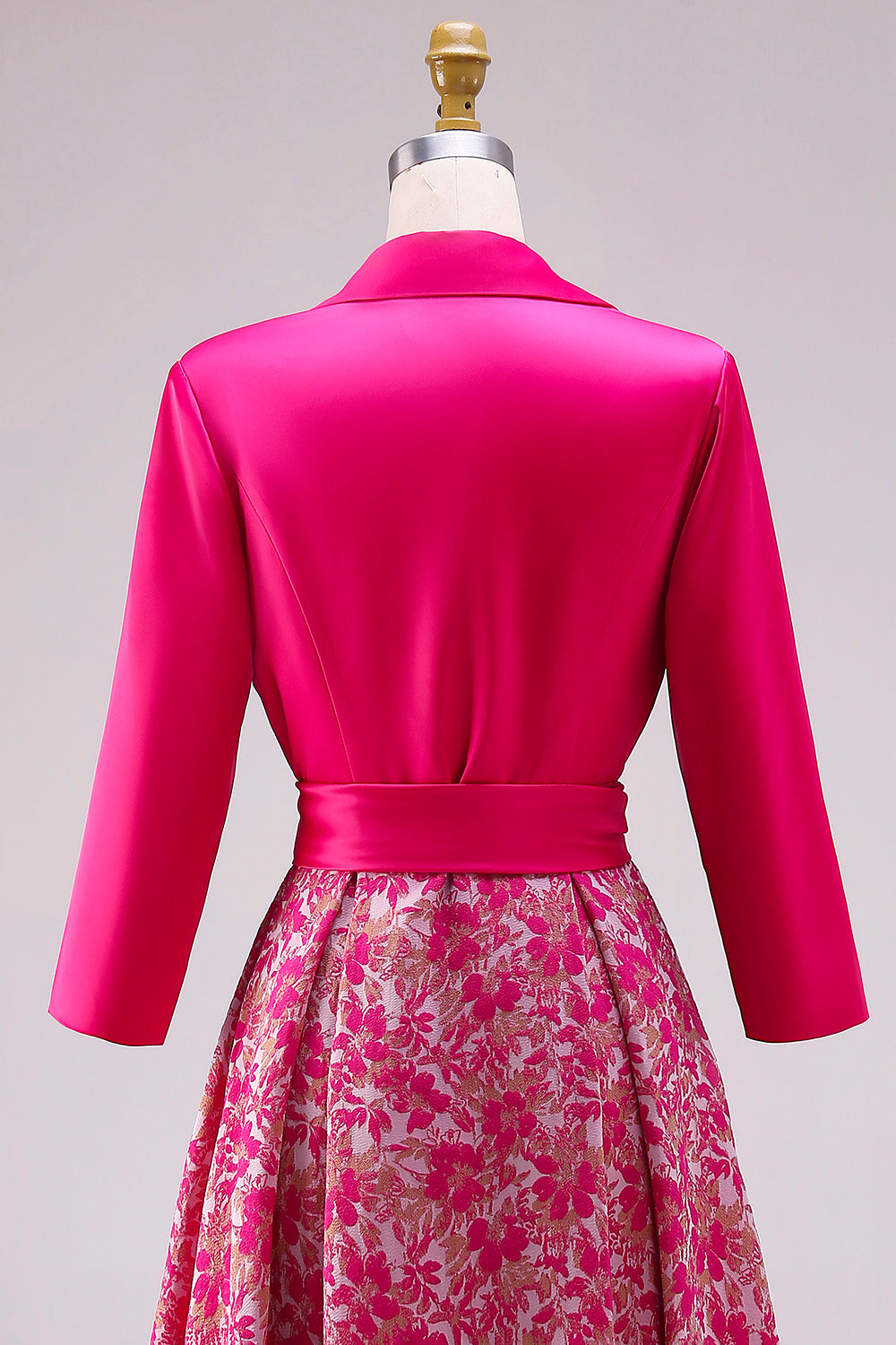 Fuchsia A Line Satin Floral Long Mother of the Bride Dress with Sleeves