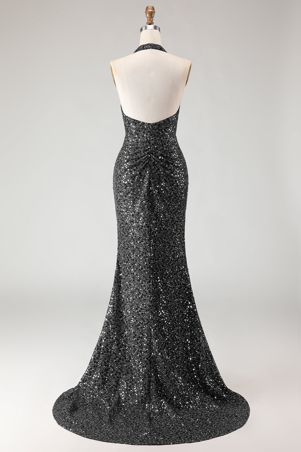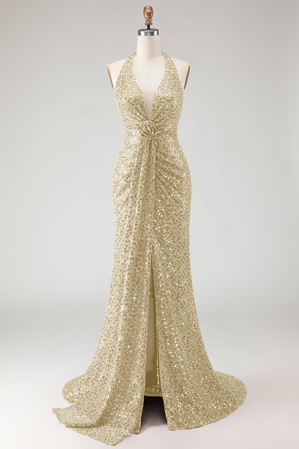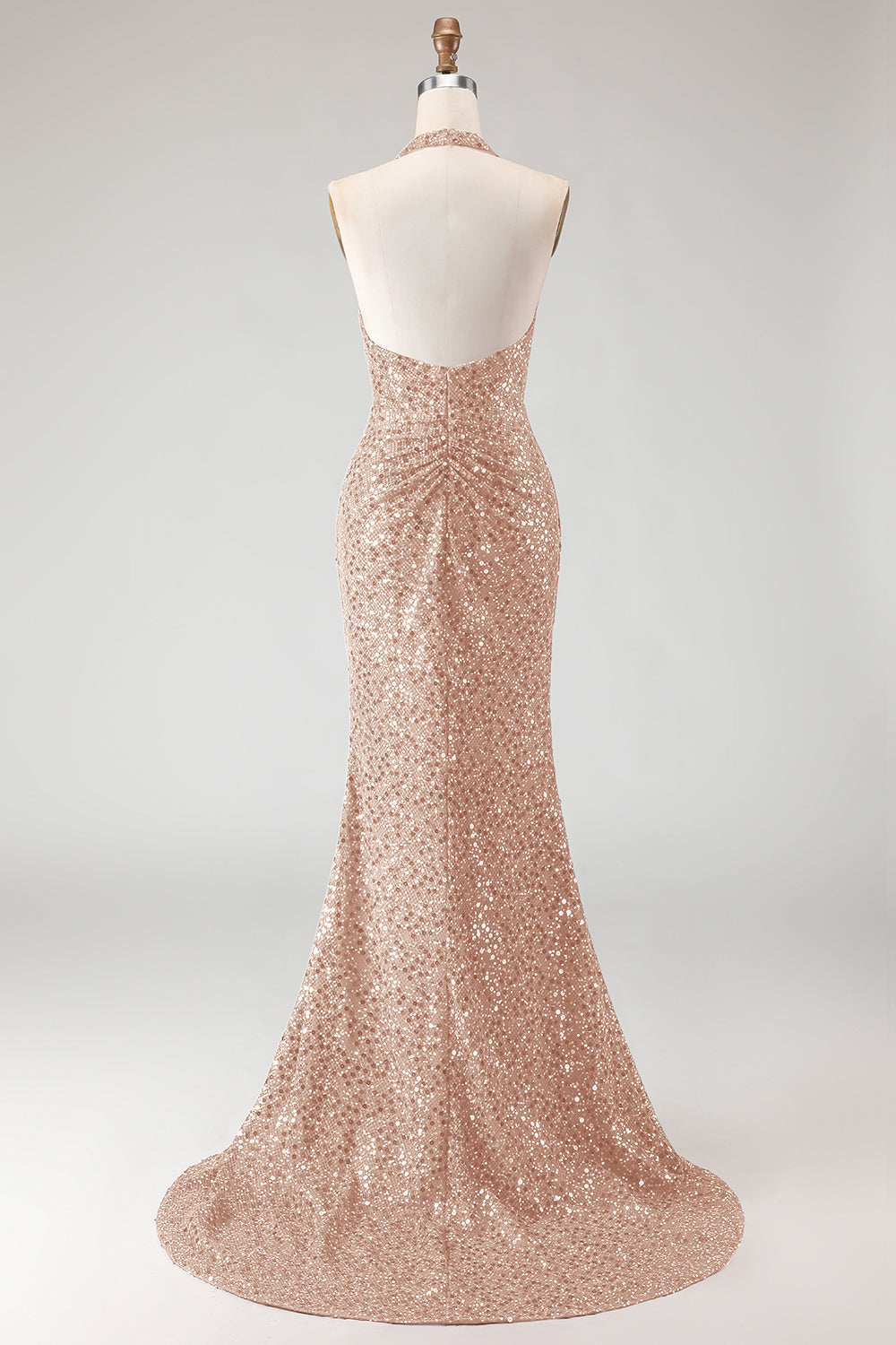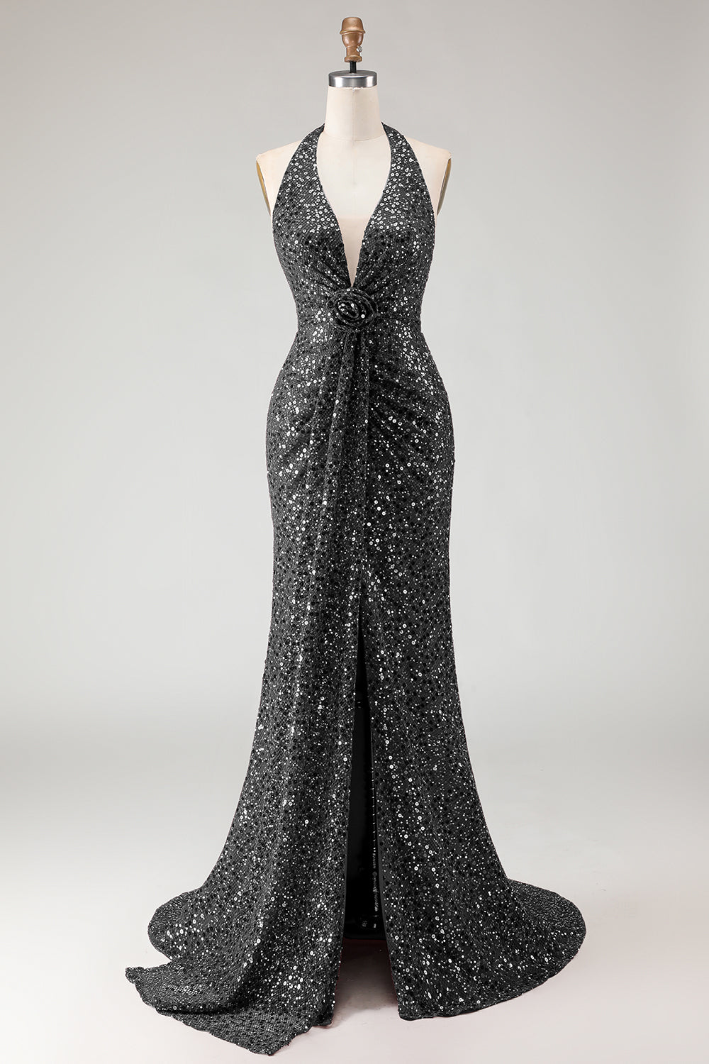 Sparkly Burgundy Mermaid Halter Sequin Long Prom Dress with Slit