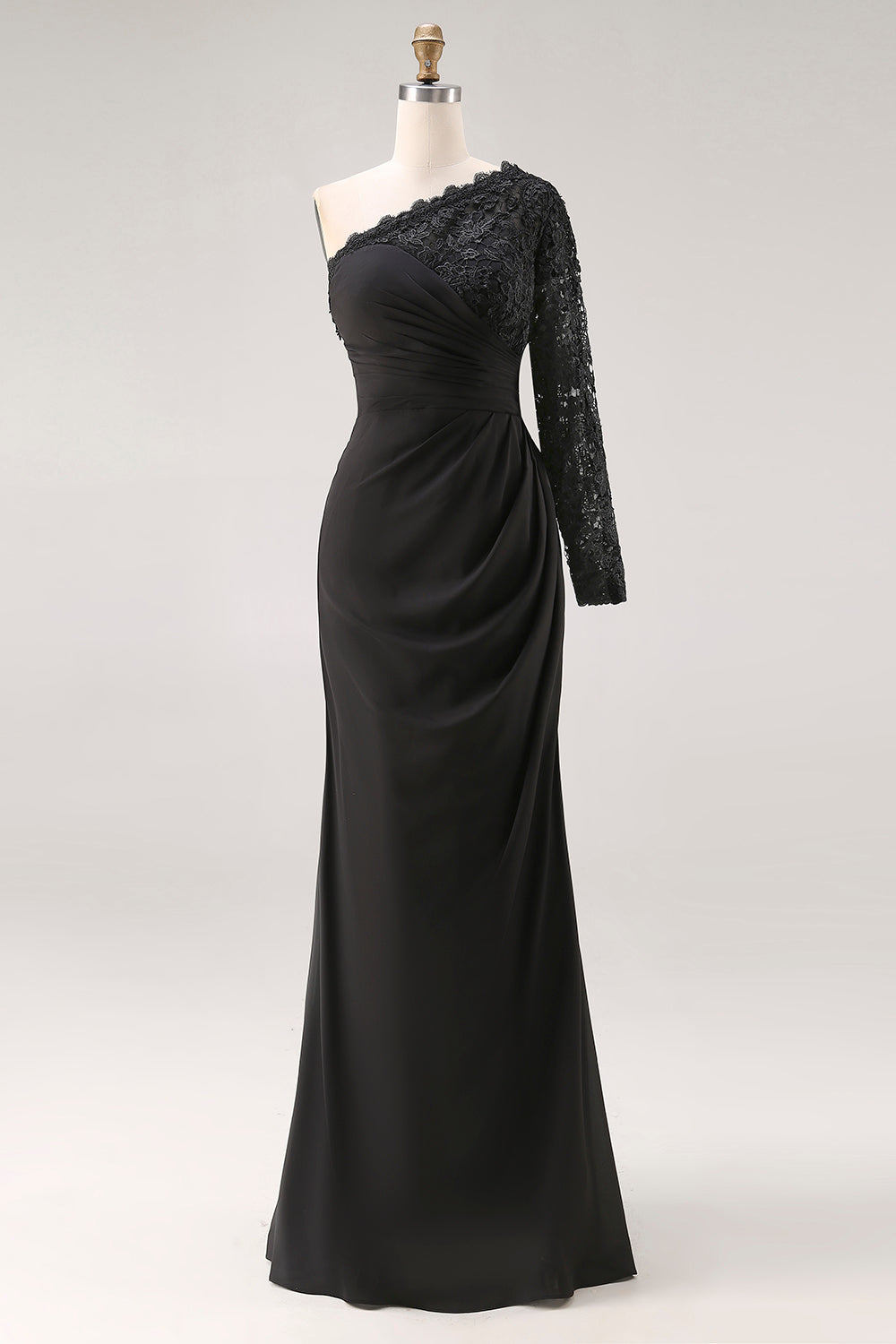 Black One Shoulder Mermaid Plus Size Mother Of The Bride Dress with Lace