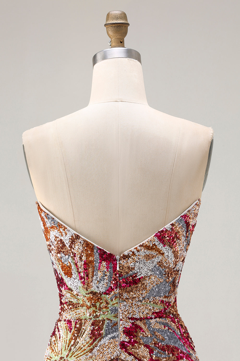 Sparkly Fuchsia Mermaid Sweetheart Sequins Florla Long Prom Dress with Slit
