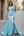 Slate Blue A Line V-Neck Long Prom Dress with Pockets