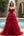 Red Princess Deep-V Neck Tulle Tiered Long Prom Dress with Beading