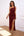 Burgundy A-Line Spaghetti Straps Pleated Tea-Length Evening Dress