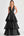 Black A-Line Spaghetti Straps Flowers Ruffles Tulle Long Prom Dress with Slit