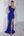 Navy Satin Square Neck Sheath Long Prom Dress with Slit
