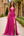 Hot Pink Beaded V Neck A Line Tiered Long Prom Dress