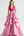 Sparkly Pink Halter Corset Appliques Tiered Long Prom Dress