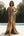 Gold Off The Shoulder Sheath Metallic Satin Prom Dress with Slit